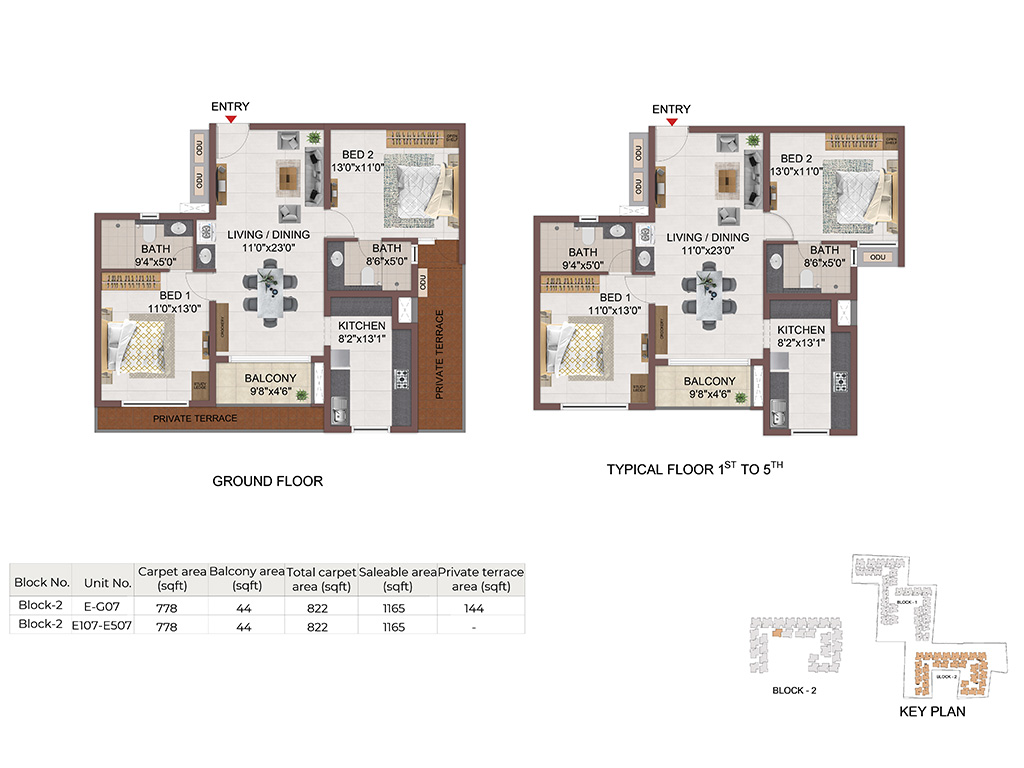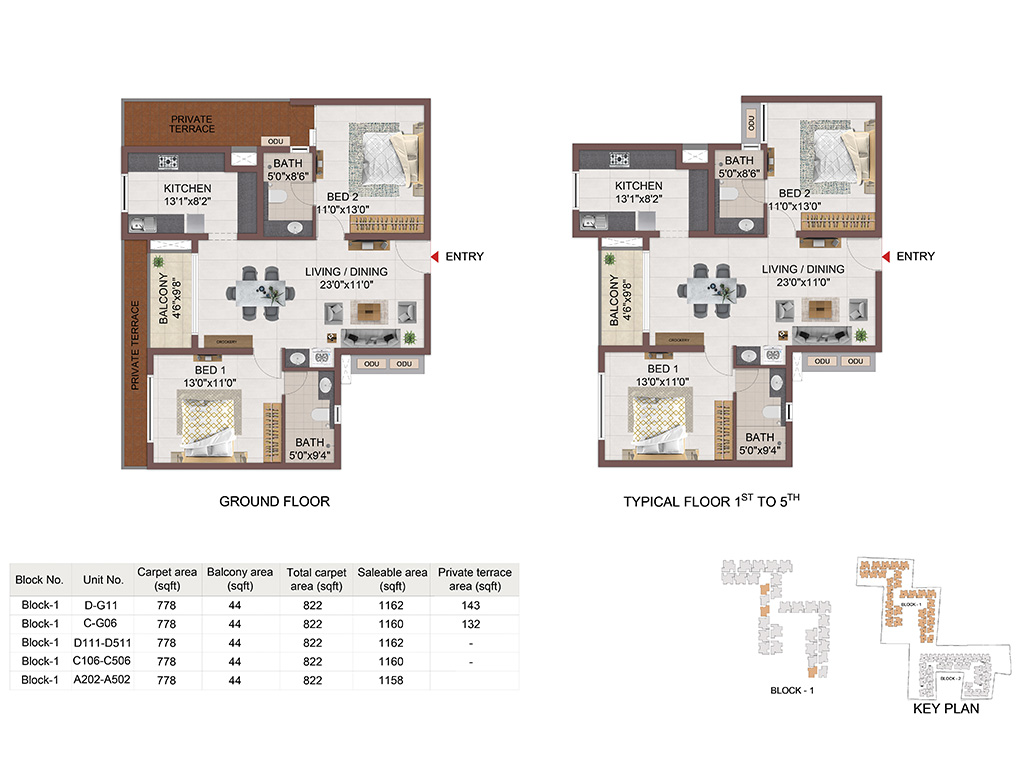 | 2 BHK | Compact | 1165 Sqft to 1354 Sqft | - | Sold Out |