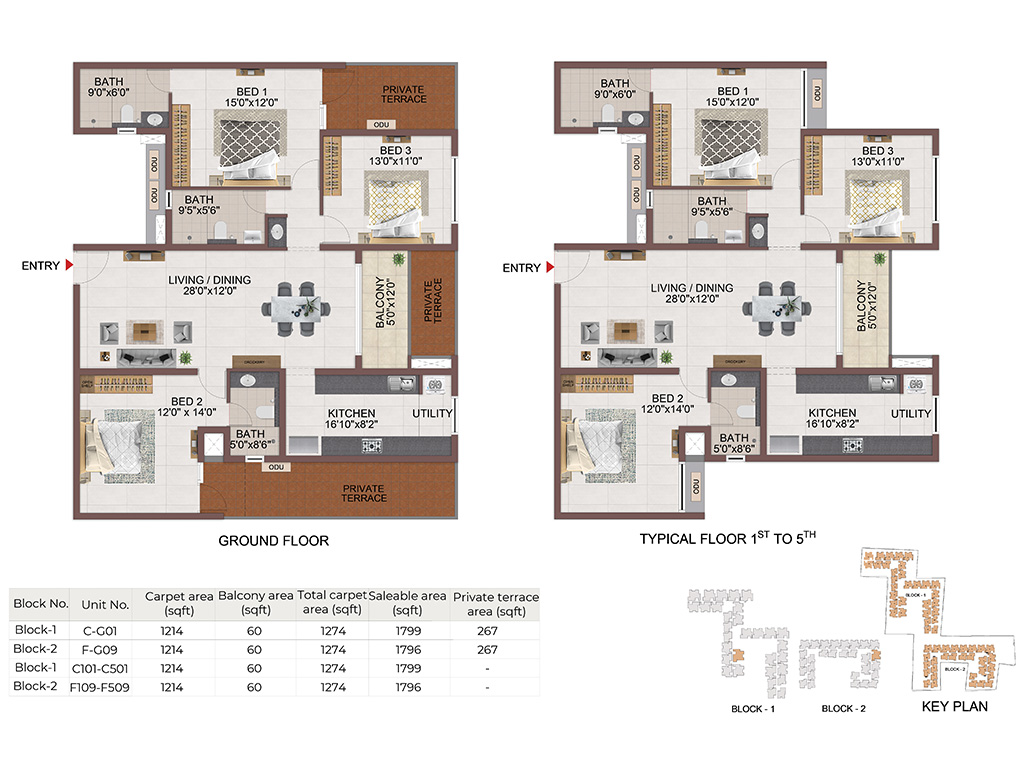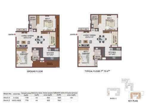 | BHK | Unit Type | Built-Up Area | Price Per Sq. Ft. | Price Range |