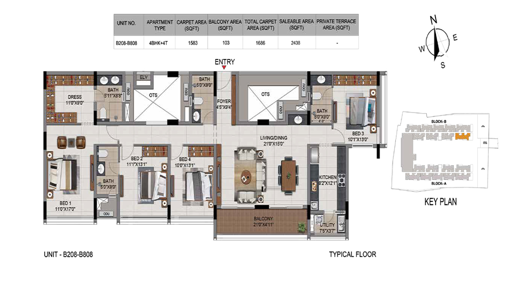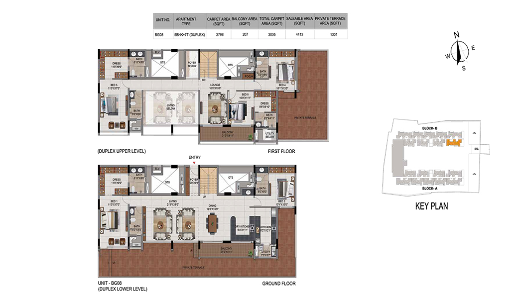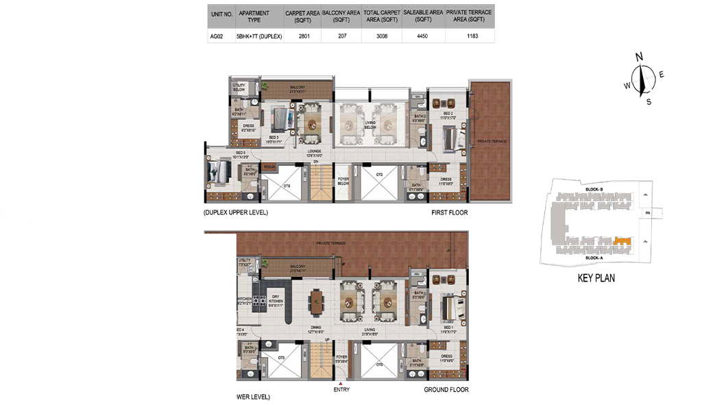| 5 BHK | Duplex | 3548 Sft | ₹8649/Sqft | Sold out |