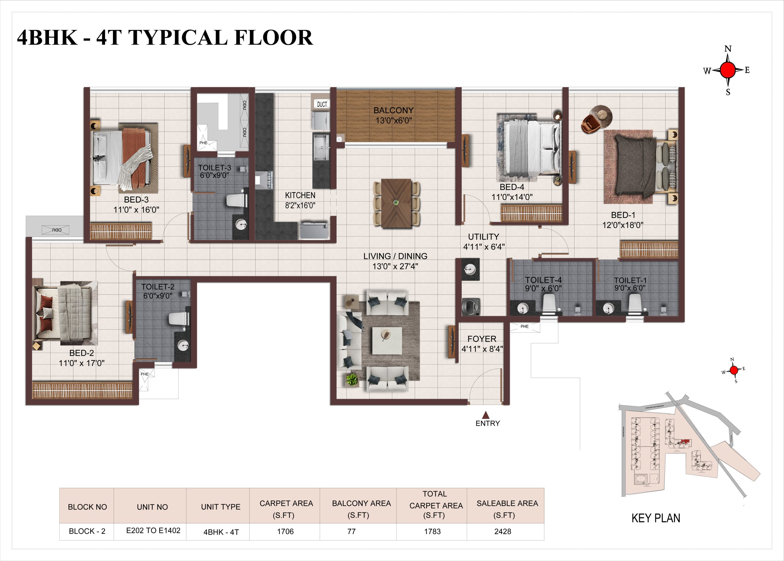 | BHK | Unit Type | Built-Up Area | Price Per Sq. Ft. | Price Range |