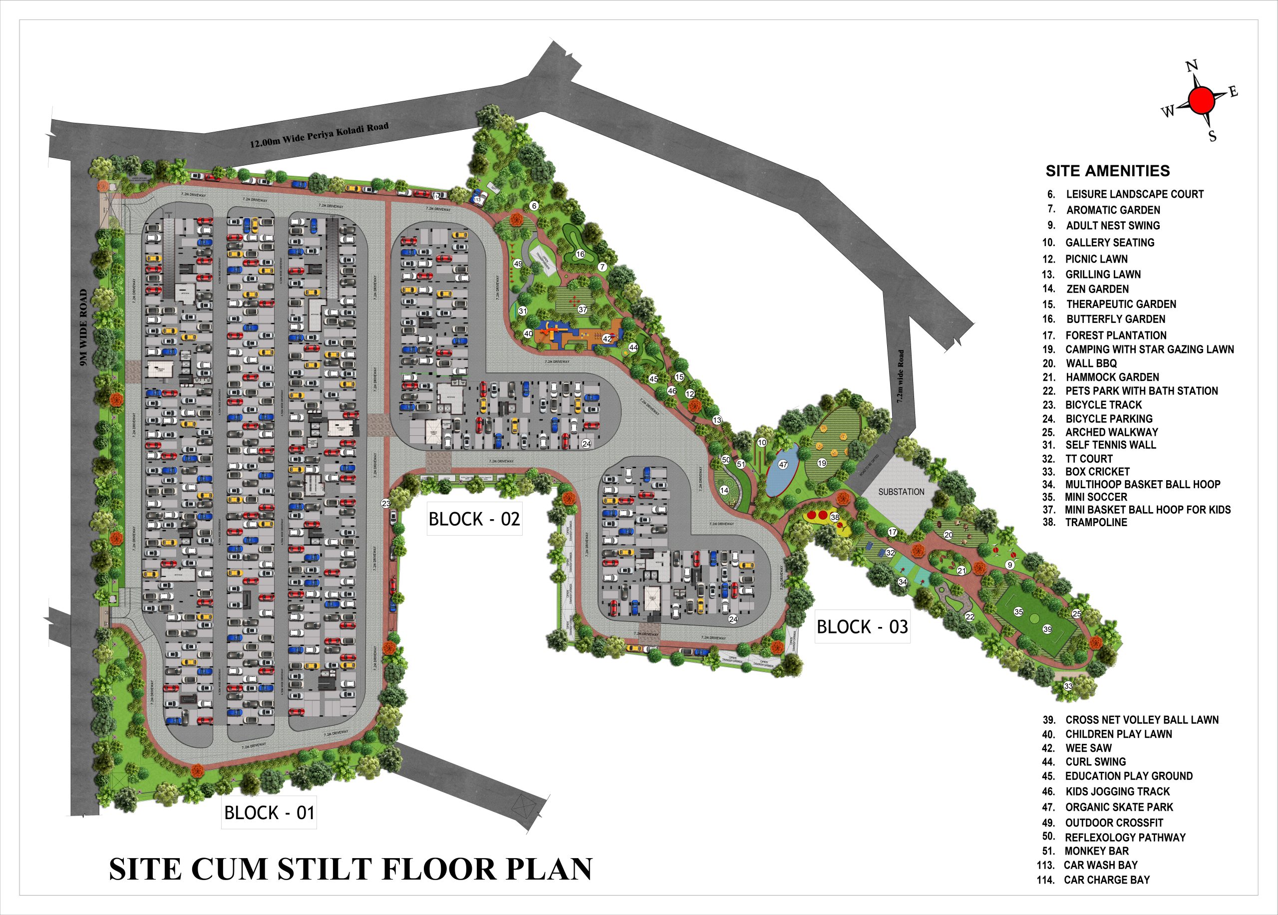 External Driveway : Interlocking paver block / equivalent flooring with demarcated driveway as per landscape design intent