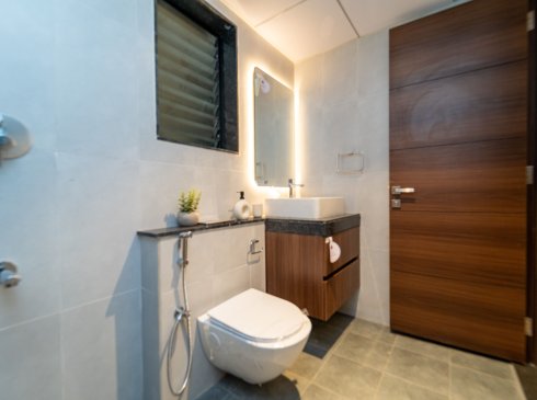 All Bathrooms : Anti-skid ceramic tiles of size 300 × 300mm