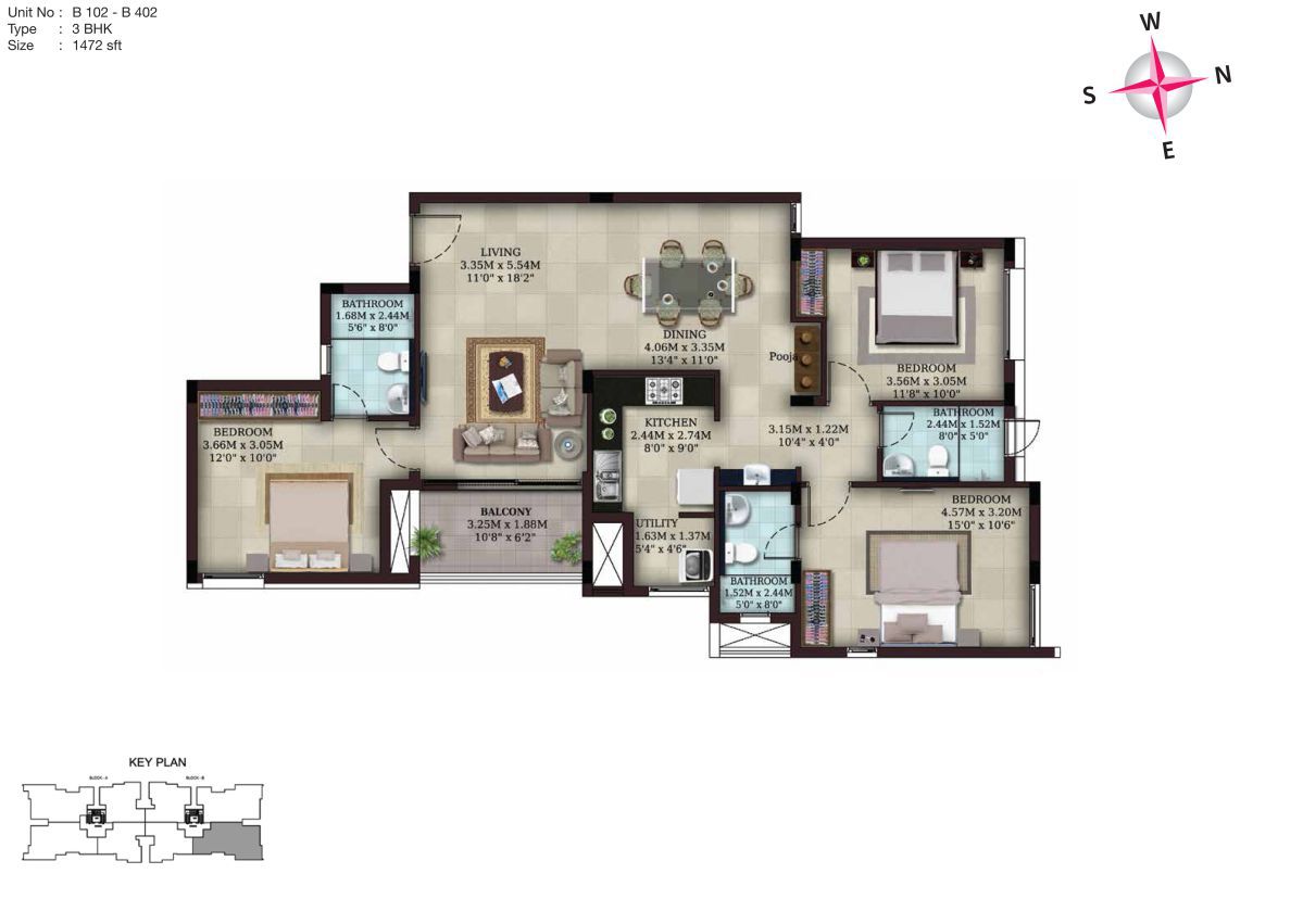 Bathroom, balcony and utility will have matte finish ceramic tiles