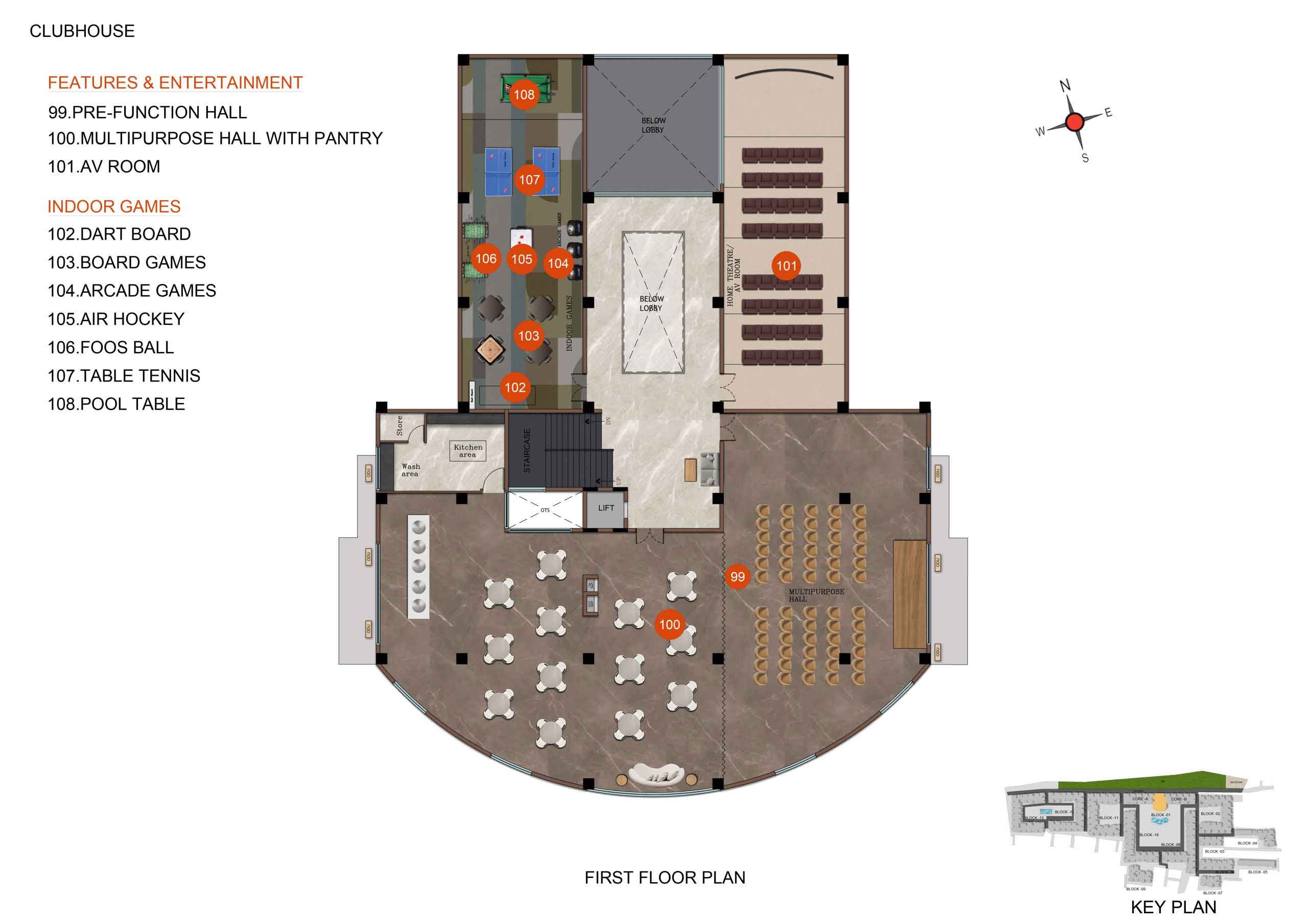 Back–up : 100% Power backup for common amenities such as Clubhouse, lifts, WTP, STP & selective common