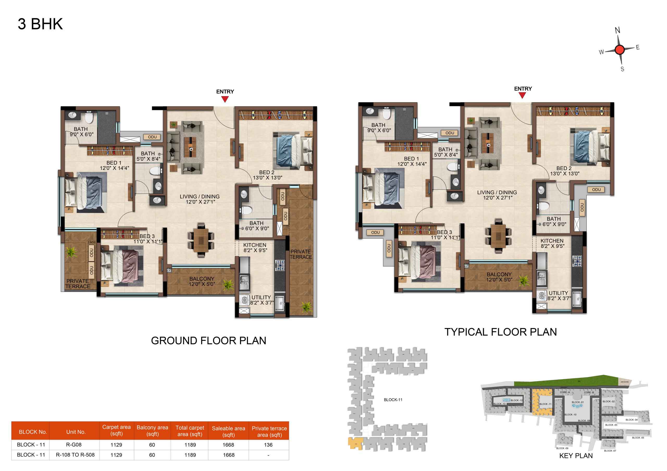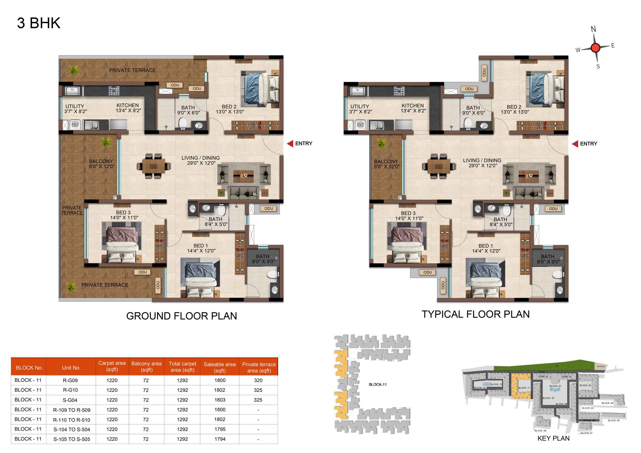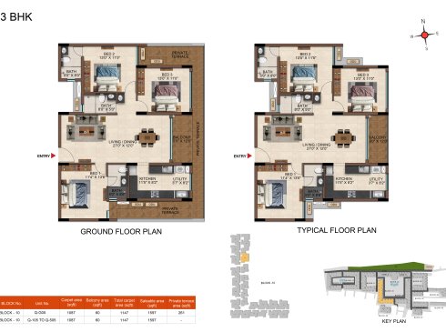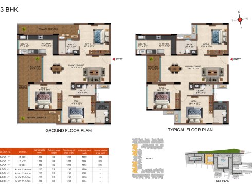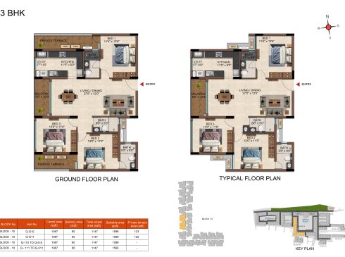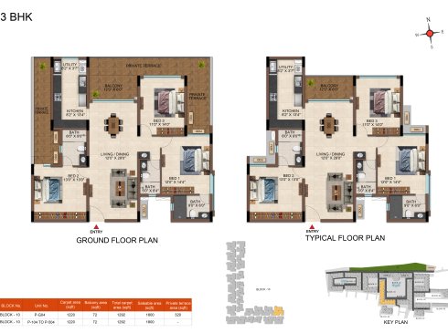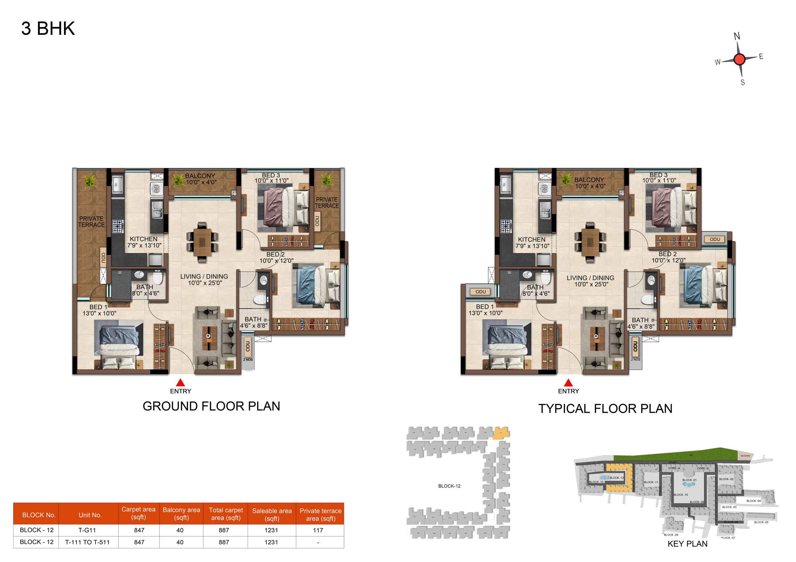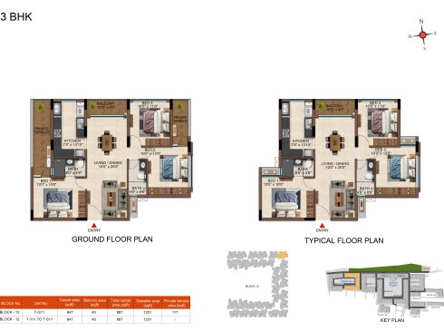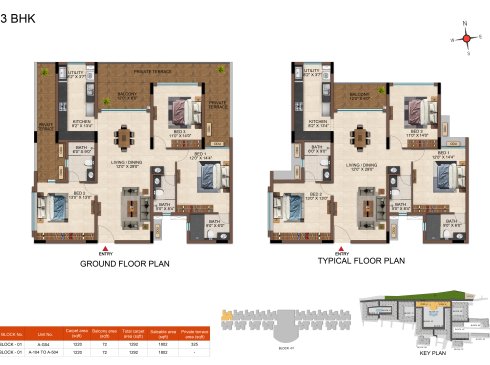 | 3 BHK | Elite | 1231 Sqft - 1234 Sqft | ₹ 4799 / Sqft | ₹ 66L Onwards |