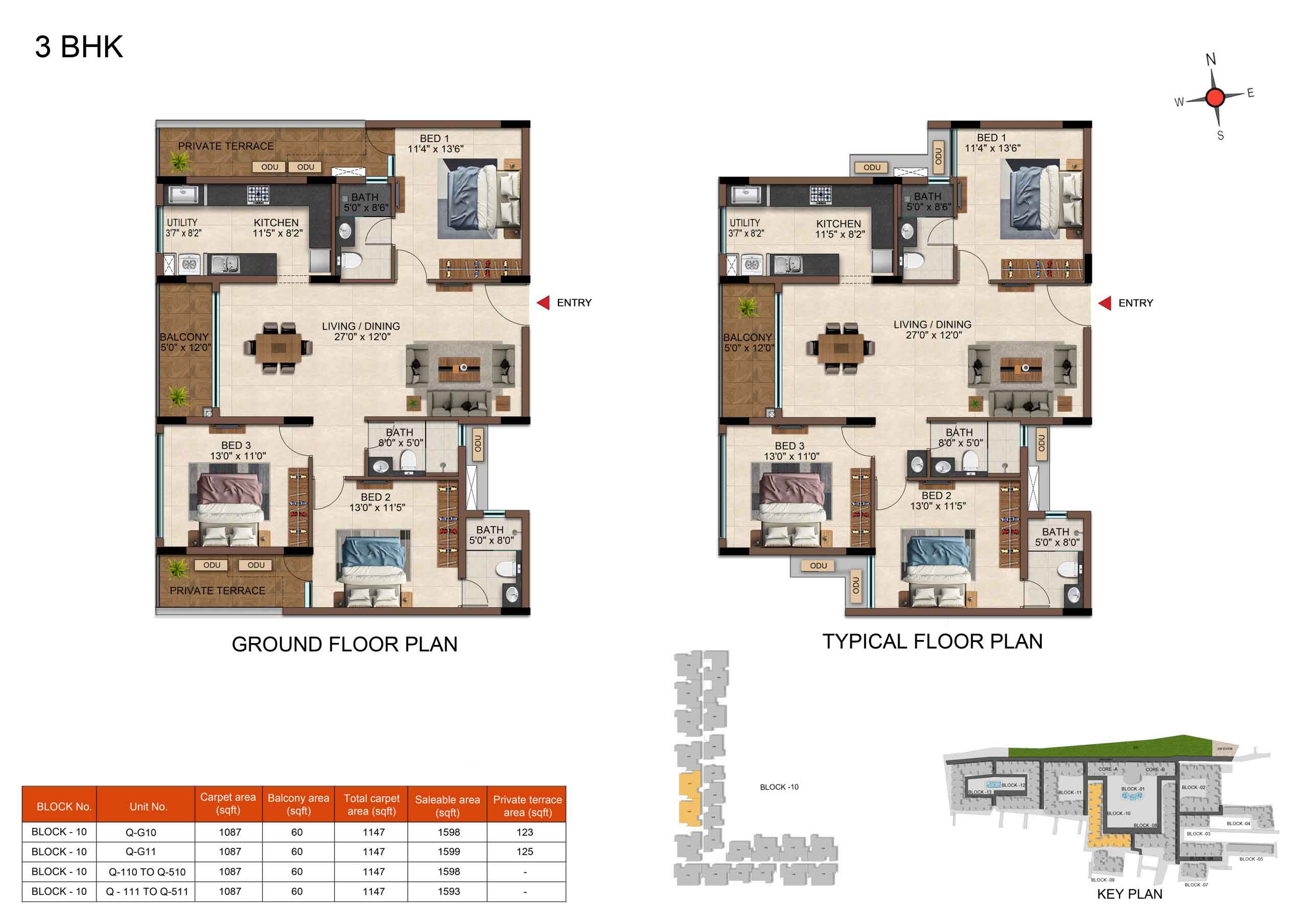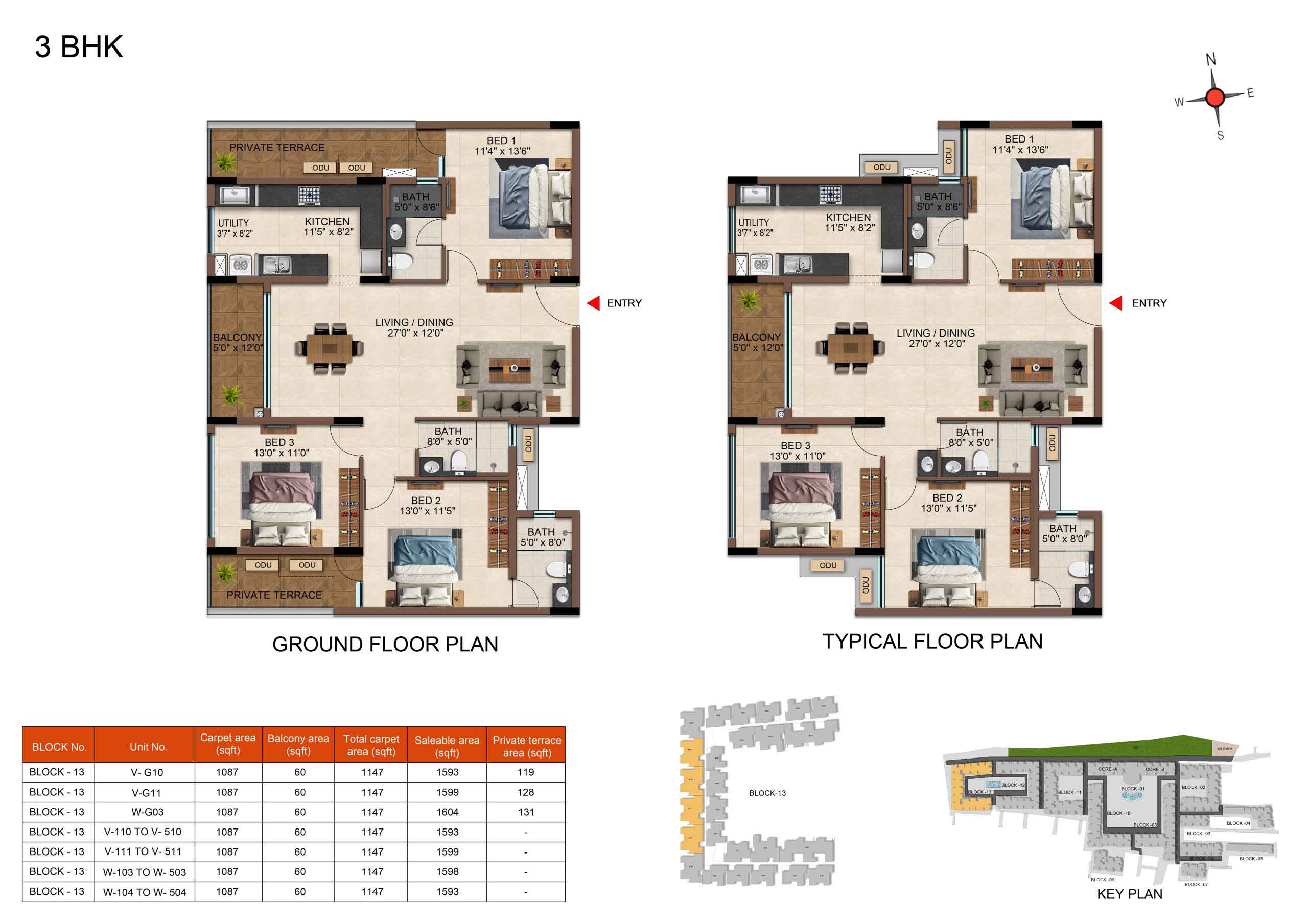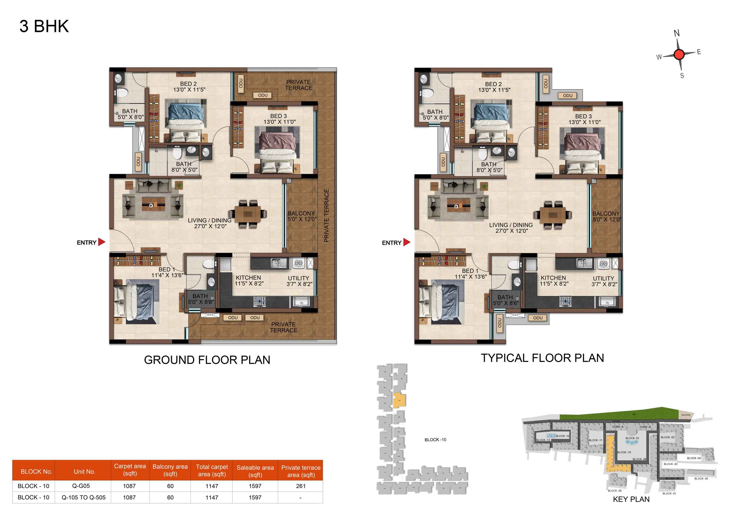 | 3 BHK | Elite | 1231 Sqft - 1234 Sqft | ₹ 4799 / Sqft | ₹ 66L Onwards |
