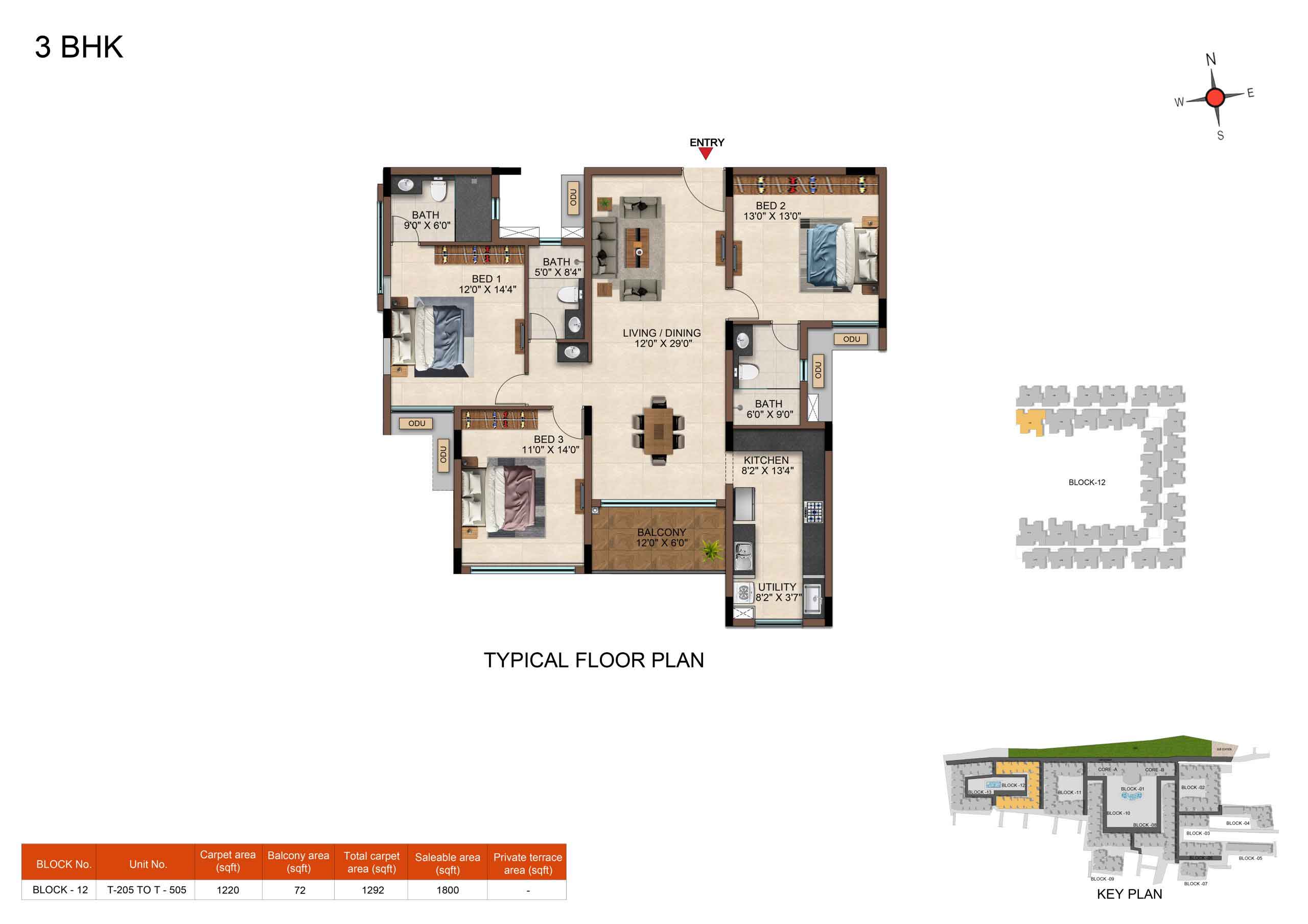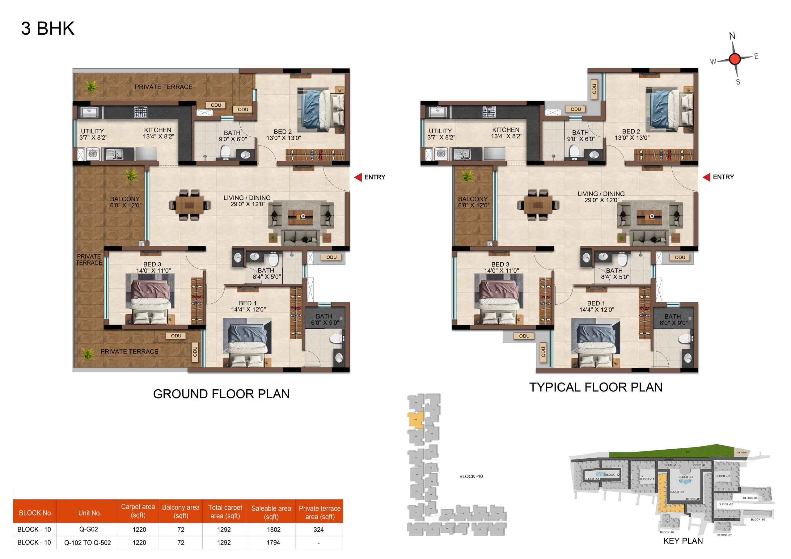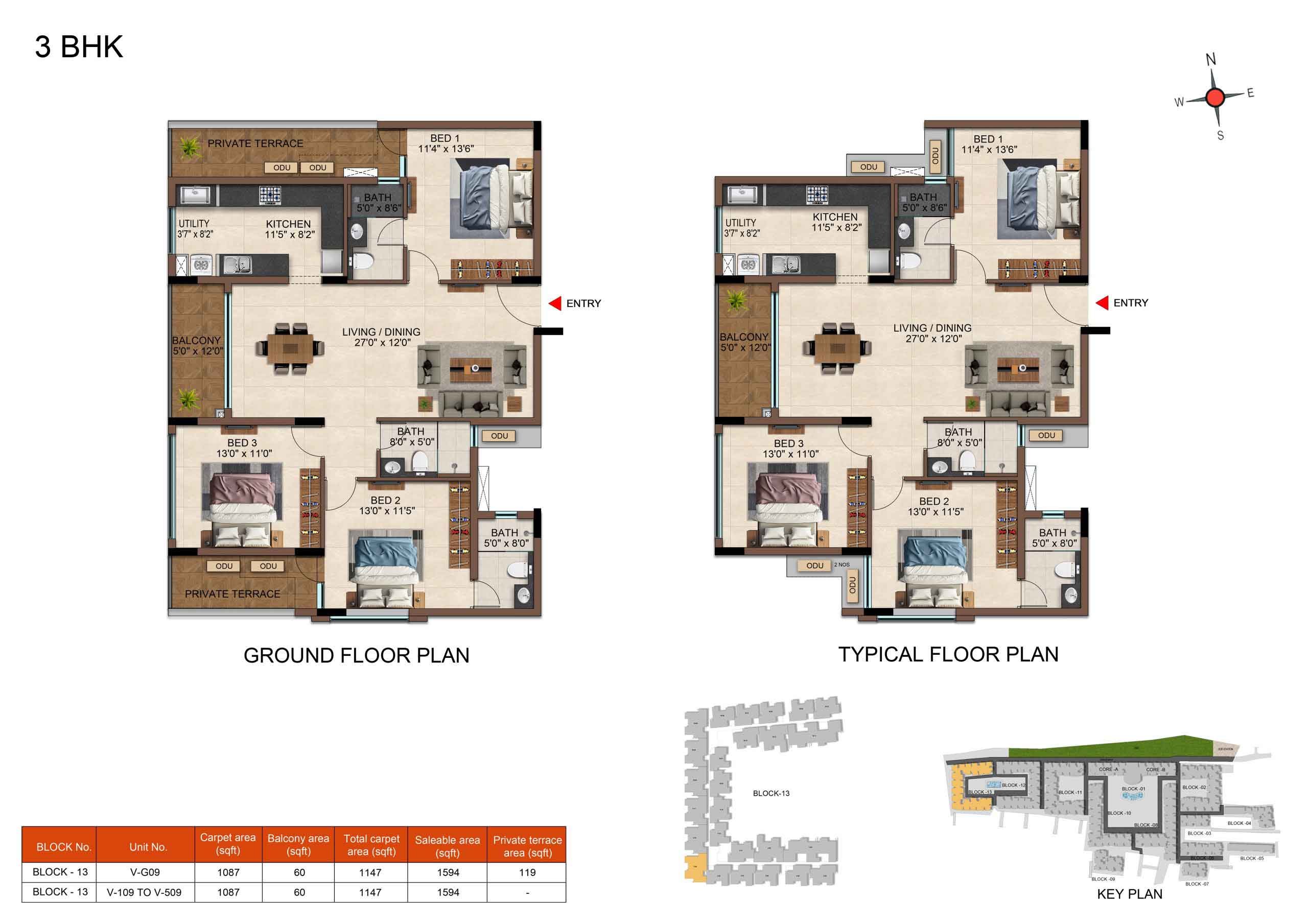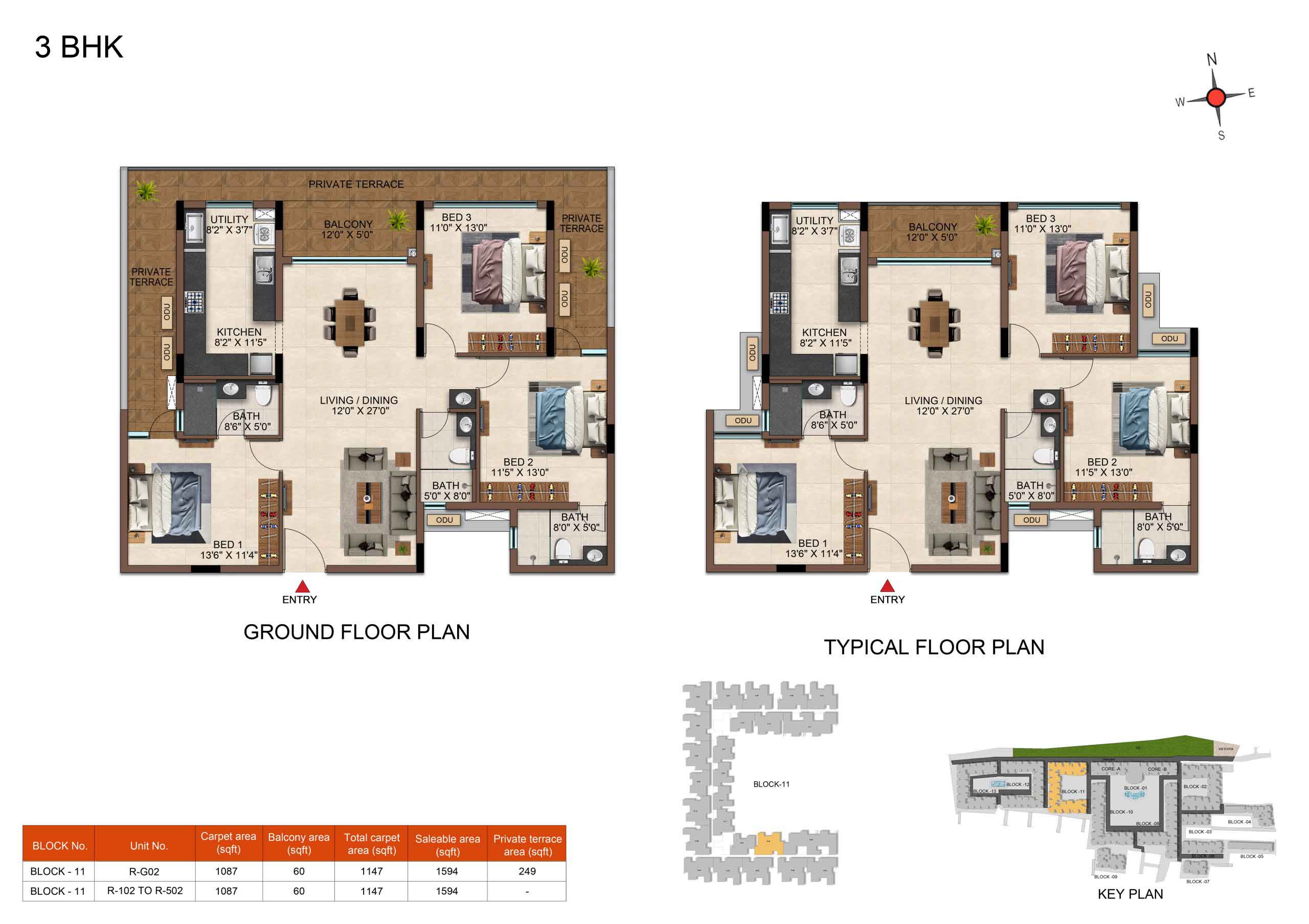 | 3 BHK | Elite | 1231 Sqft - 1234 Sqft | ₹ 4799 / Sqft | ₹ 66L Onwards |