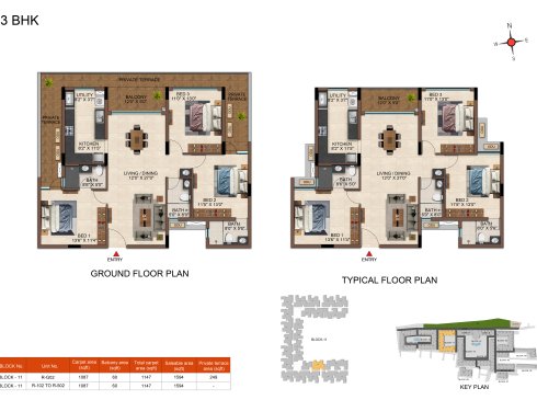 | 3 BHK | Regular | 1604 Sqft - 1807 Sqft | ₹ 4699/ Sqft | ₹ 84L to 93L |