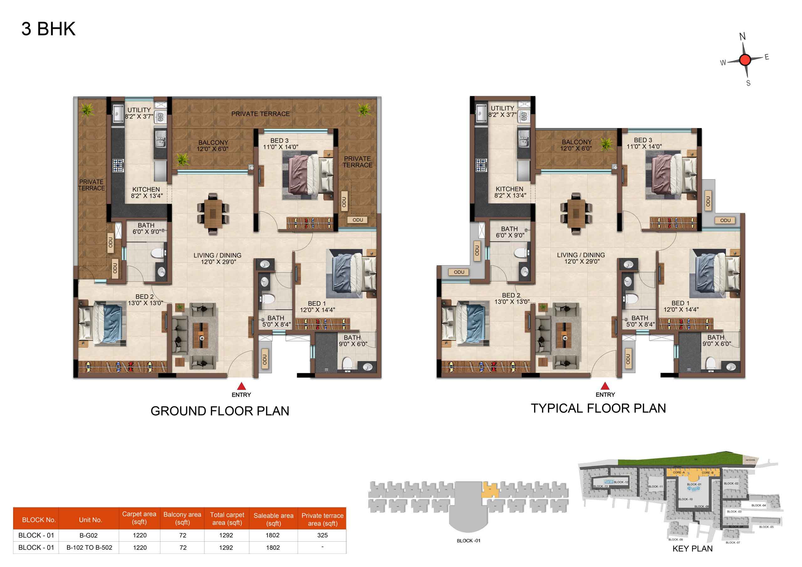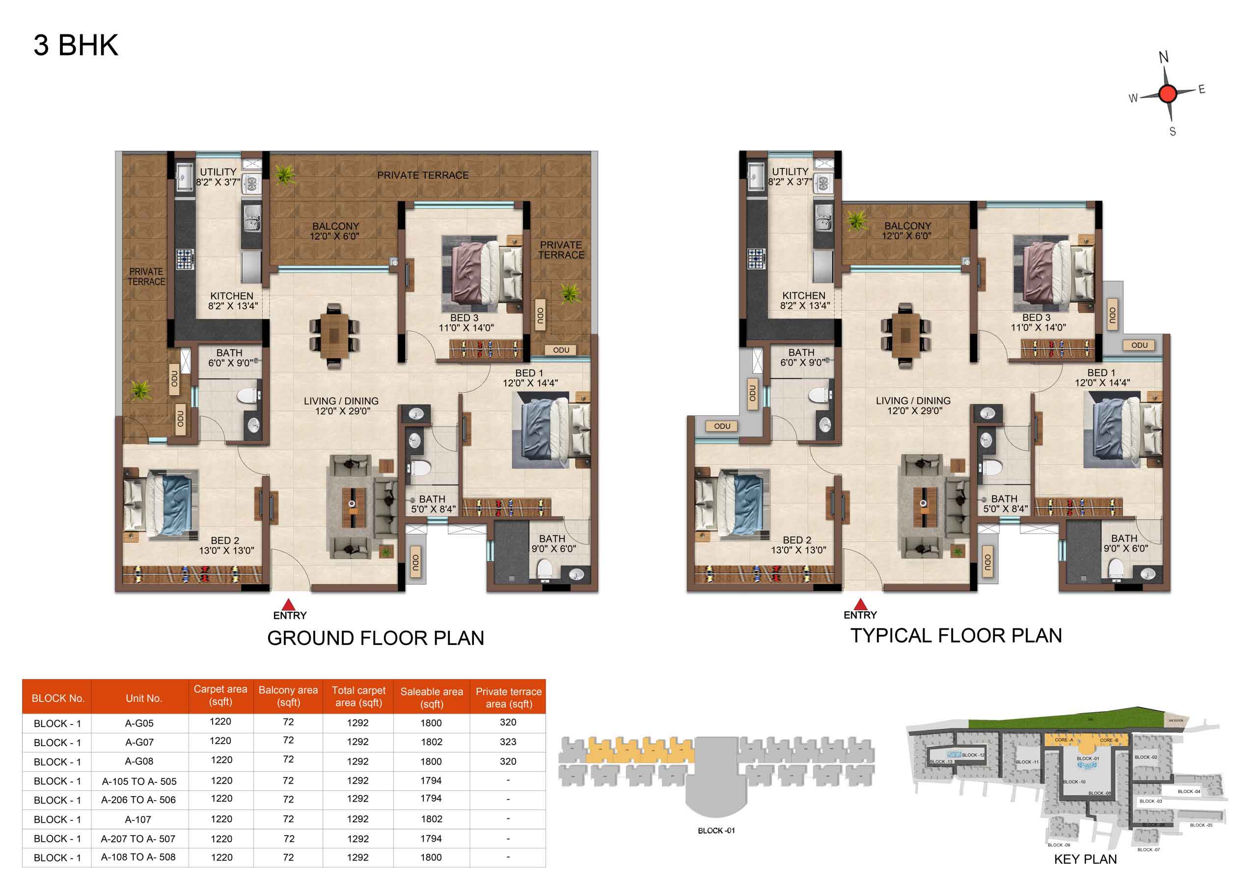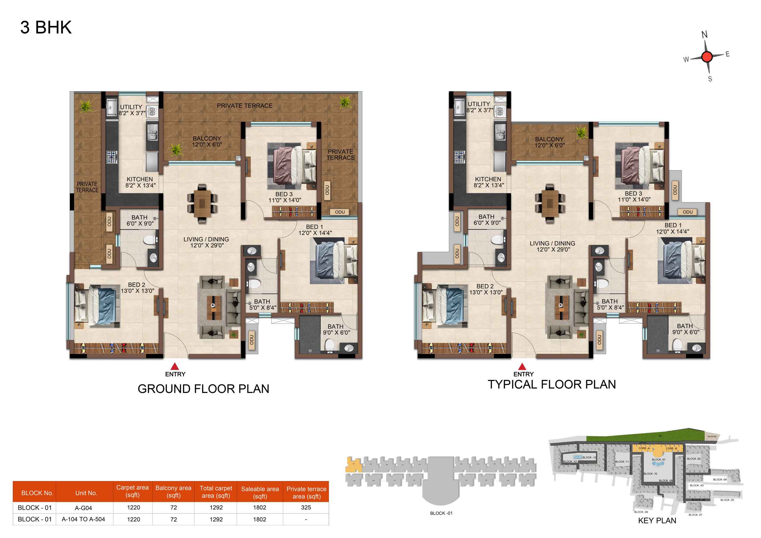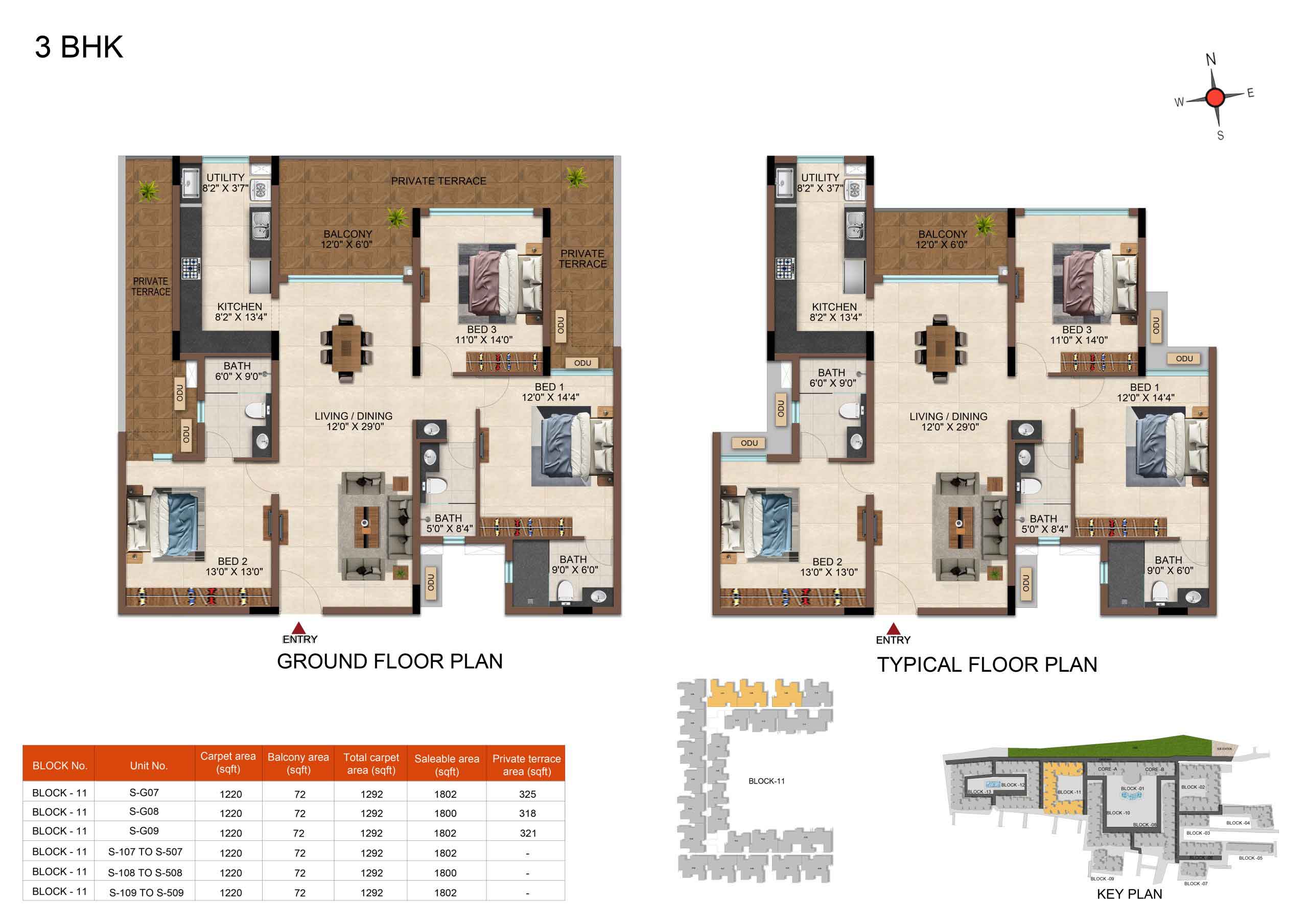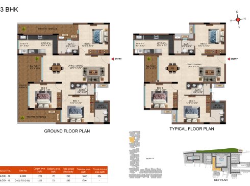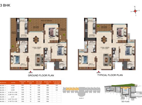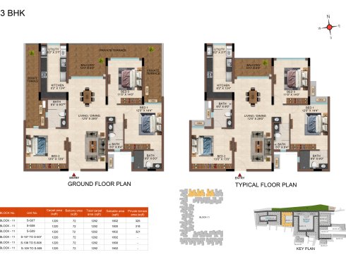 | 3BHK -3T | Regular | 1604 Sqft - 1807Sqft | ₹ 4599 / Sqft | ₹ 83L to 91L |
