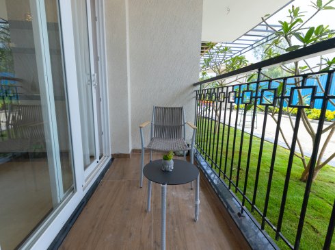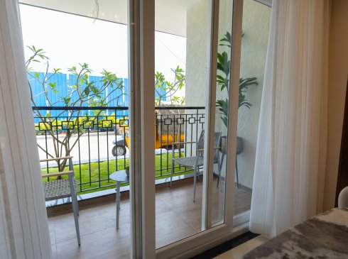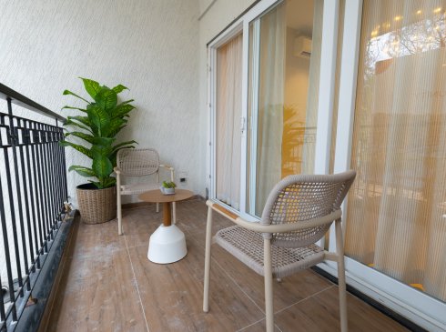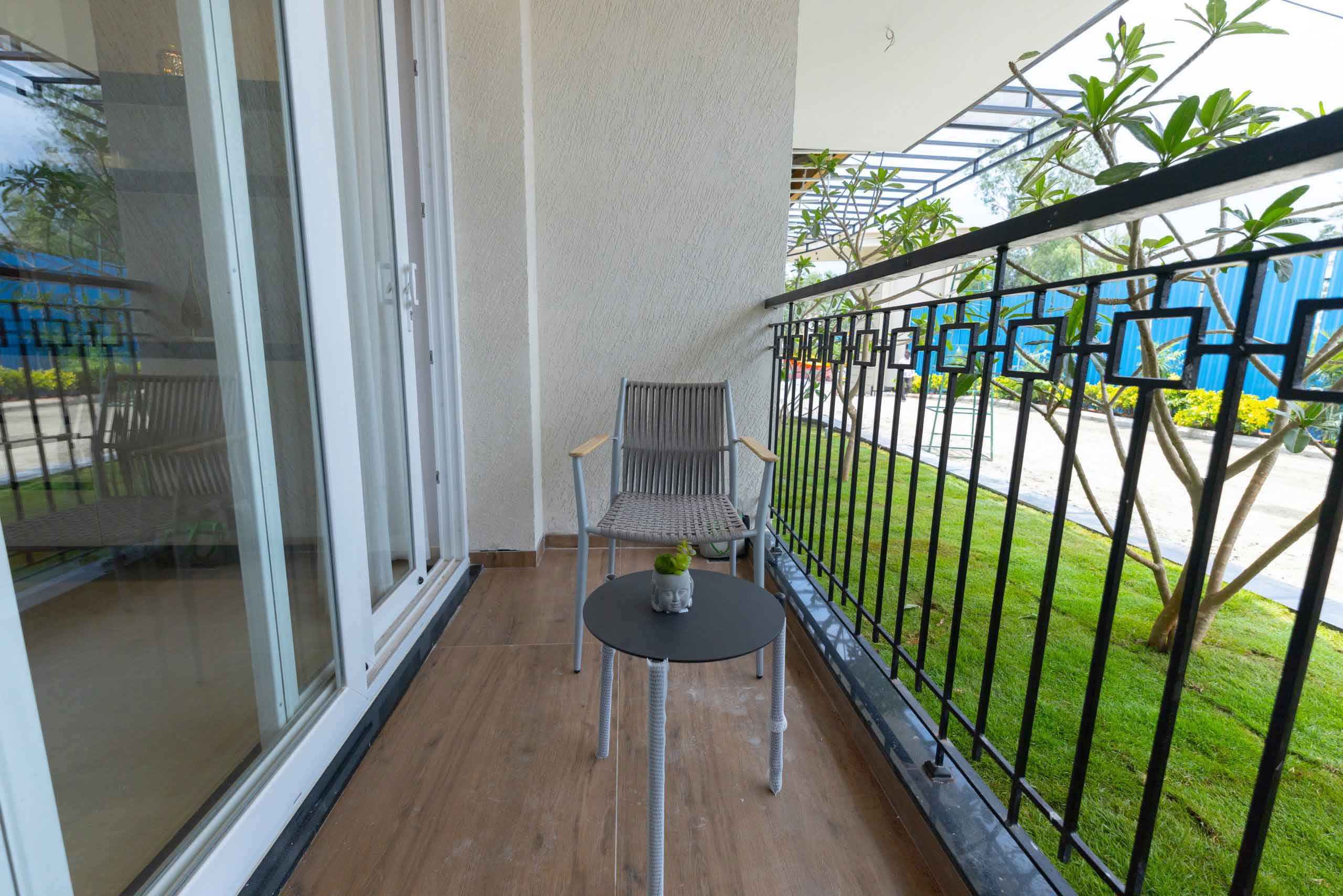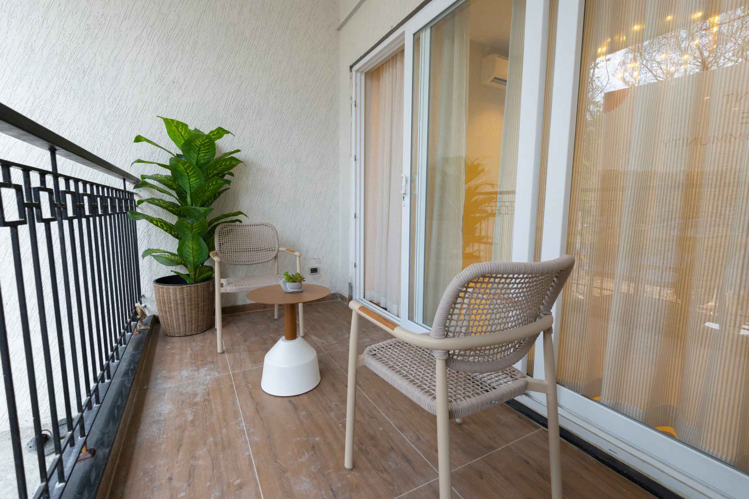 Balcony and private open terrace : Wooden finish tile flooring of size 600x1200mm