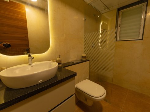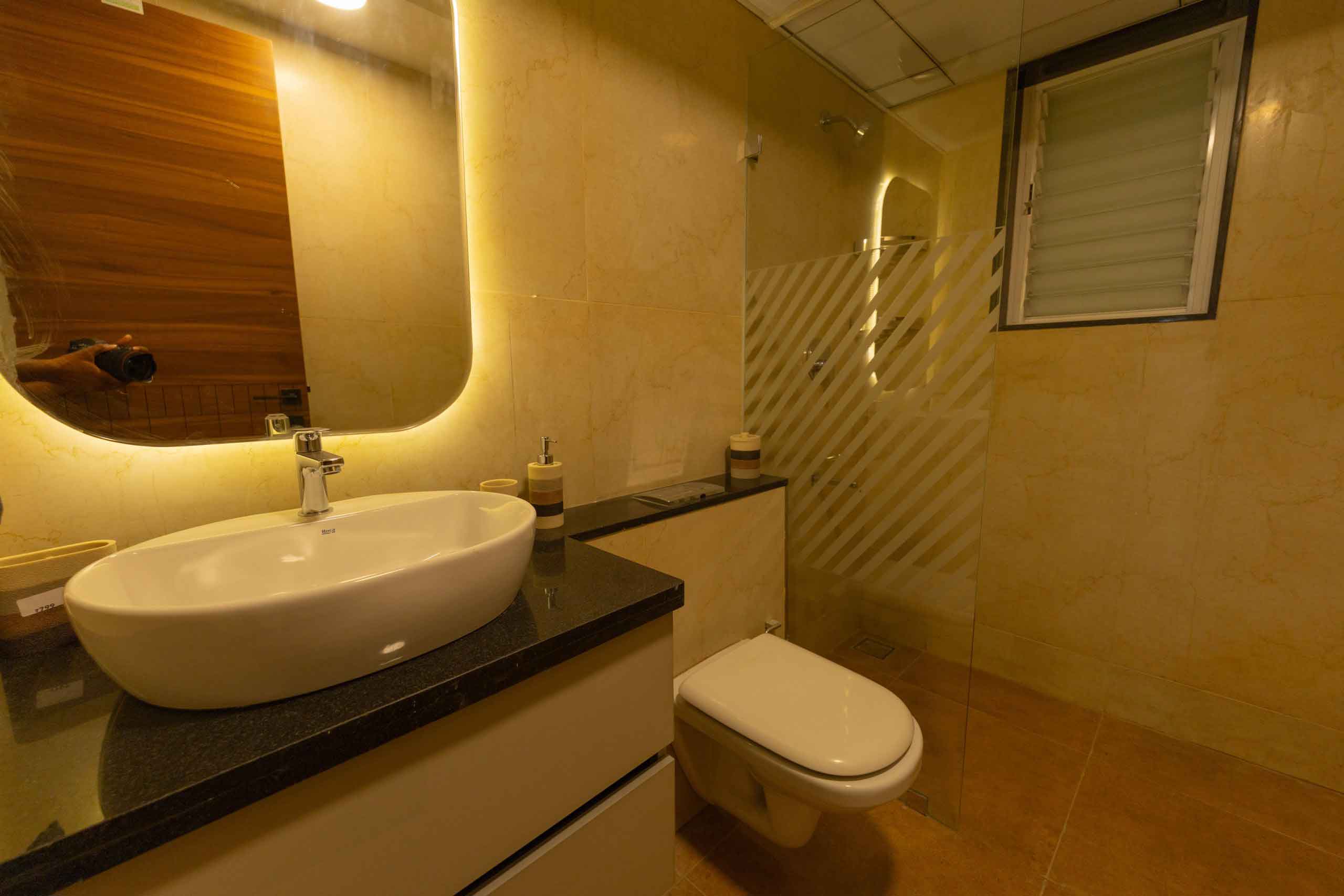 Master & Other Bathrooms : Ceramic wall tiles of size 600x1200mm for height of 2450mm & will be finished with a coat of
