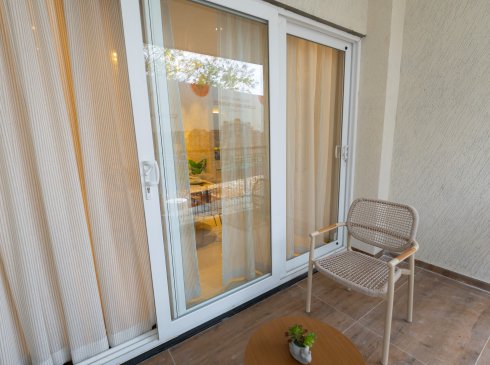 Terrace doors : Good quality door frame with FRP shutters of size 900x2100mm with paint finish. Ironmongeries like
