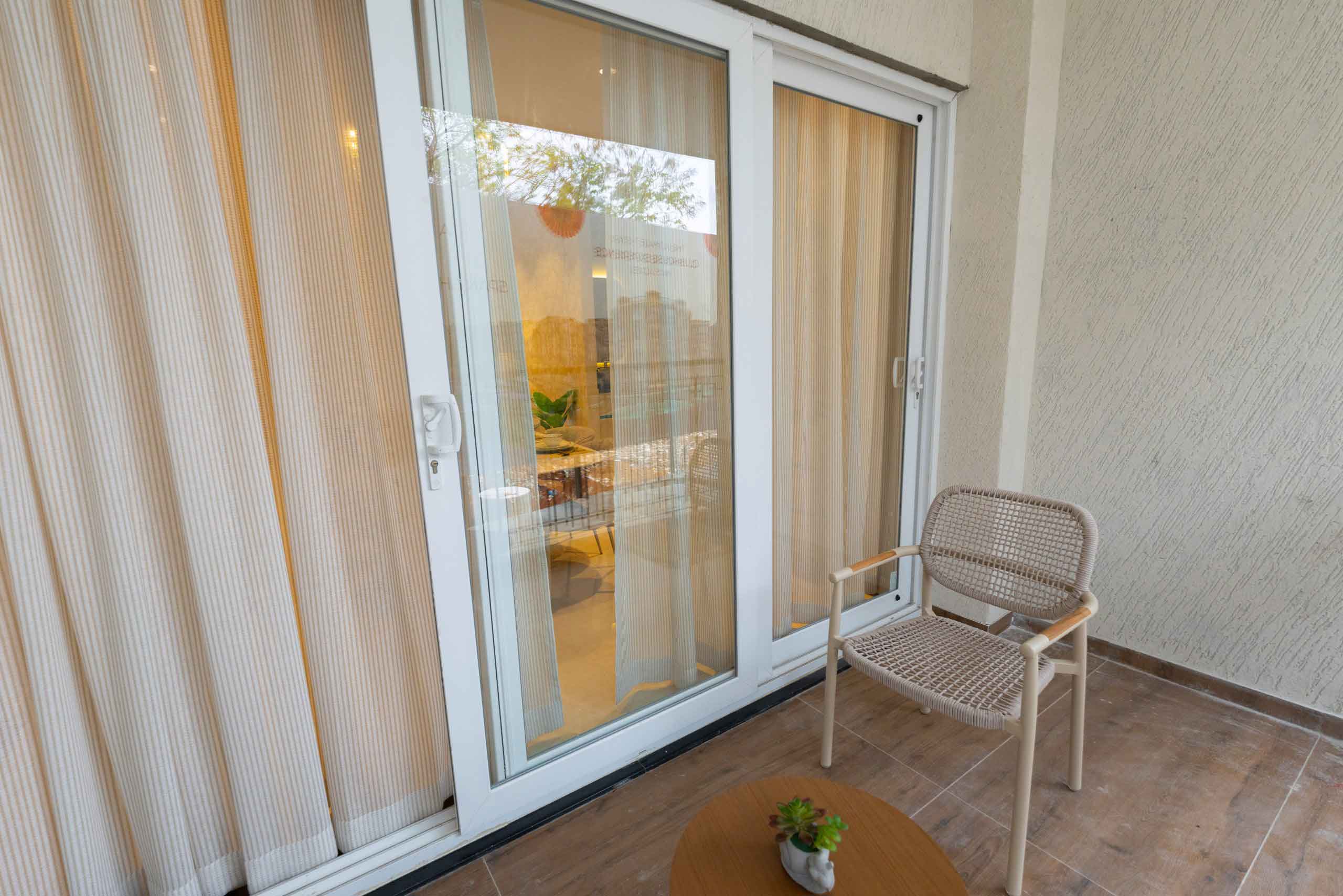 French doors : UPVC frame and sliding doors with toughened glass without grill.