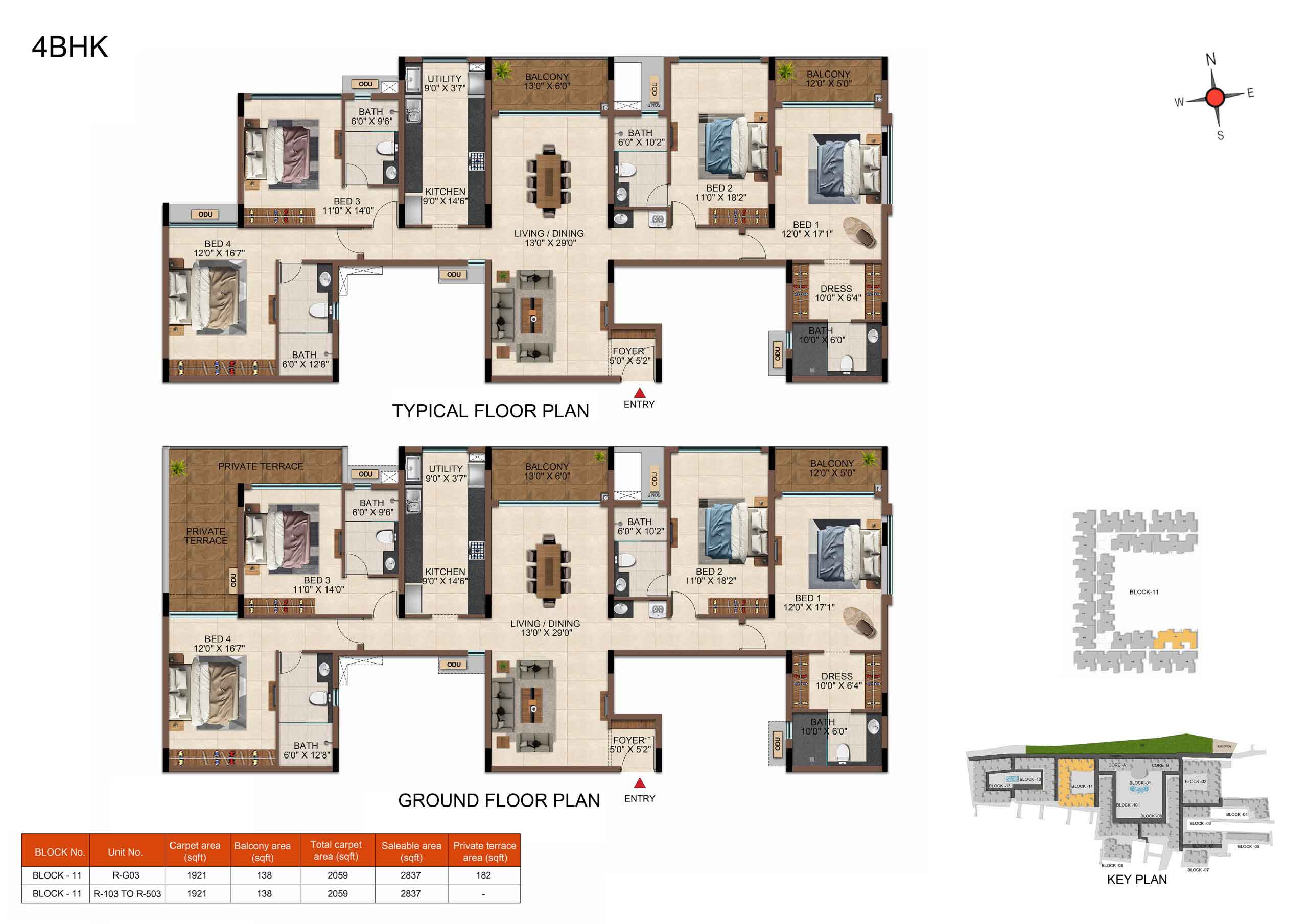 | 4 BHK | Regular | 2837 Sqft - 2840 Sqft | ₹ 4899 / Sqft | ₹ 1.47Cr Onwards |