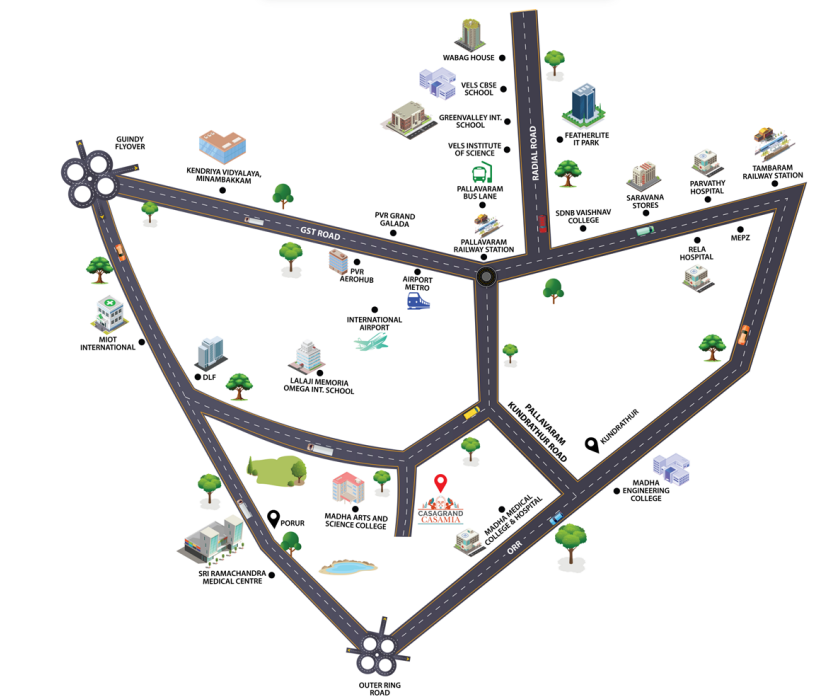Step into a world of elegance where Spanish sophistication meets modern luxury. Inspired by the grandeur of Spanish architecture, this expansive residential community in Pallavaram seamlessly combines contemporary comforts with an international lifestyle.