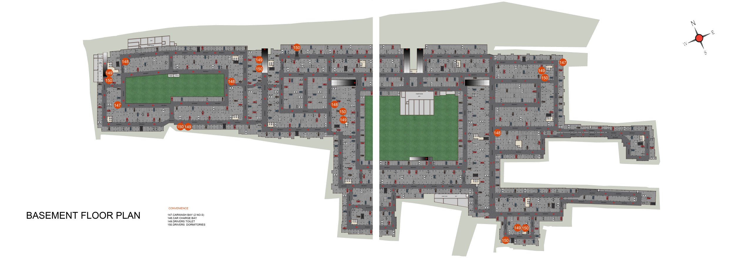 External Driveway flooring : Interlocking paver block / or equivalent flooring with demarcated driveway as per landscape design intent