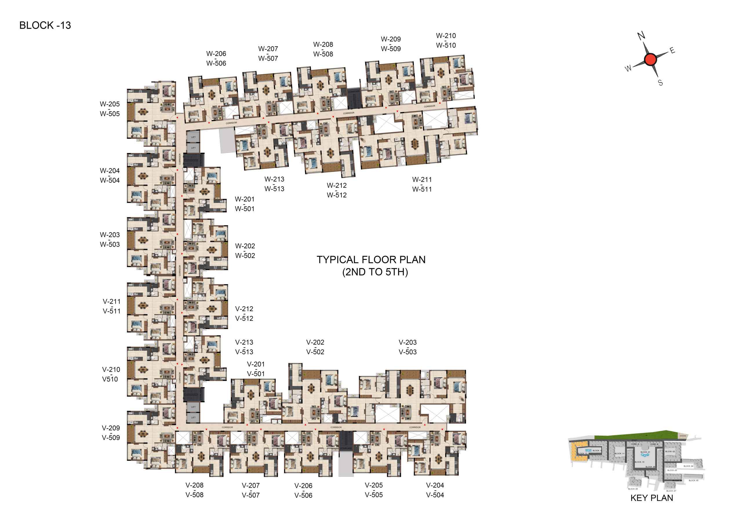 Corridor flooring : Vitrified tile of size 800x1600mm at all levels