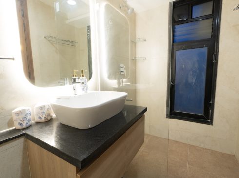 Handrail: MS handrail with roset as per architect’s design.