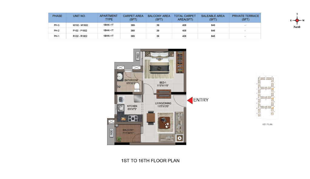 | 1 BHK | Compact | 646 Sqft | - | Sold out |