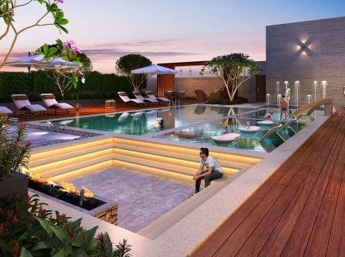 19. Rooftop Swimming pool with kids pool, Pool Island seating, Poolside refreshment corner, kids surprise fountain area and poolside lounge.