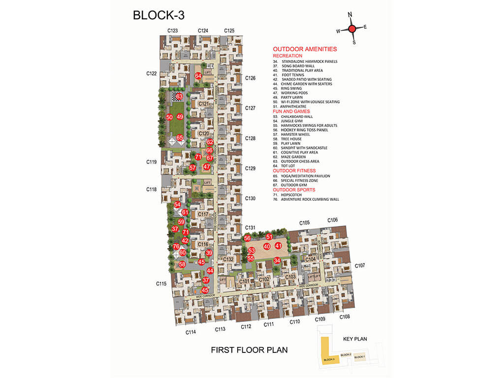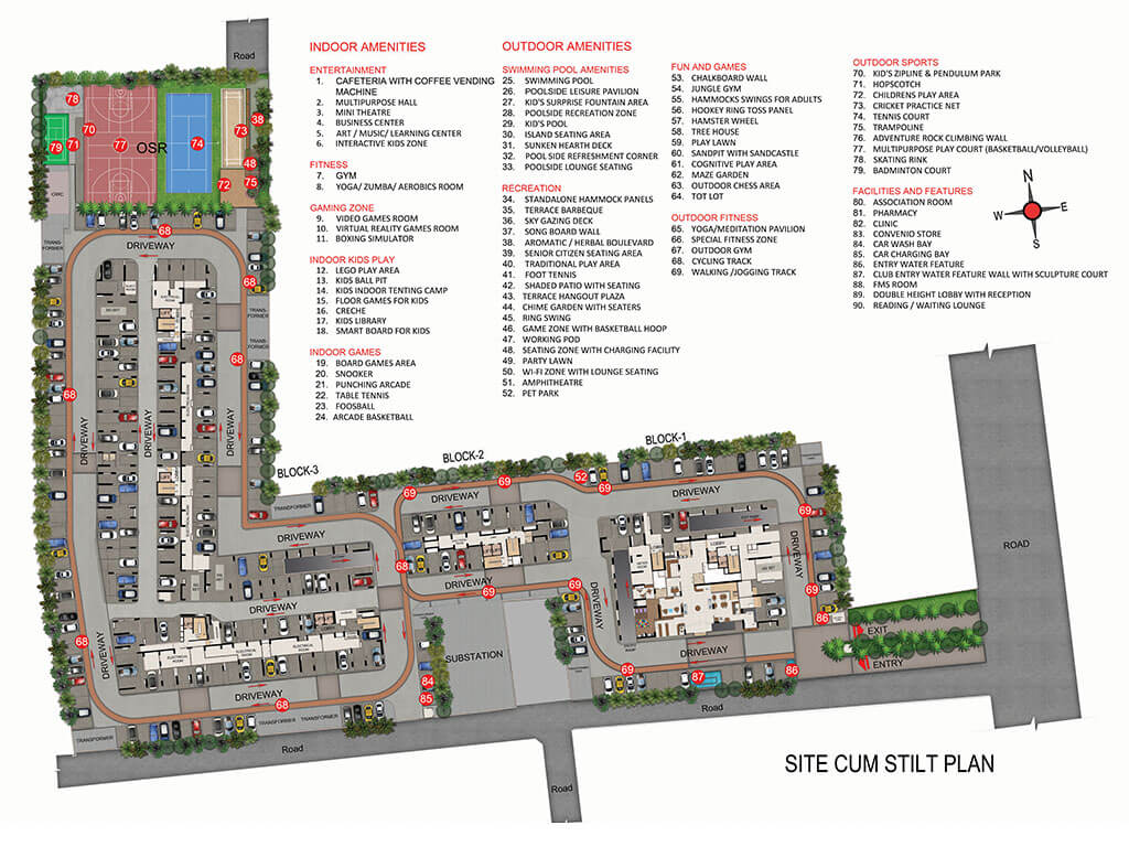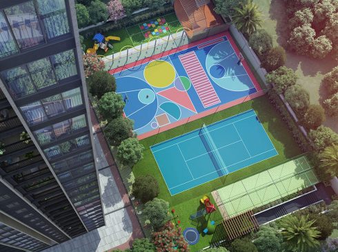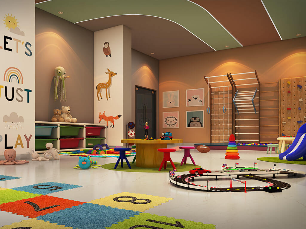 16. Children’s play area is sprawled across the project in the open landscaped parks with TOT- LOT, Adventure rock climbing, Trampoline, Hamster wheel, Hookey ring toss panel, Treehouse etc