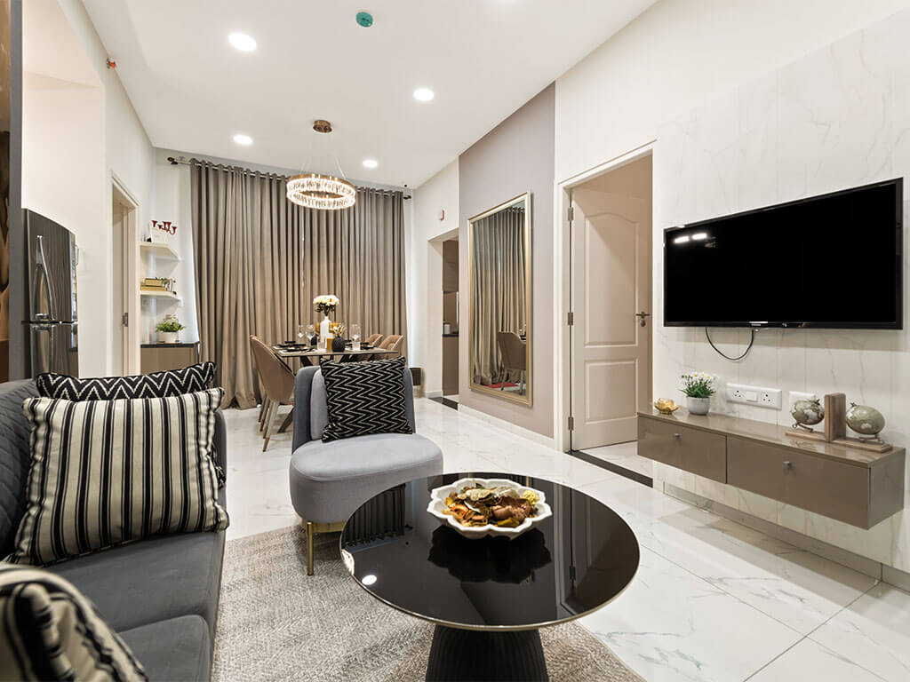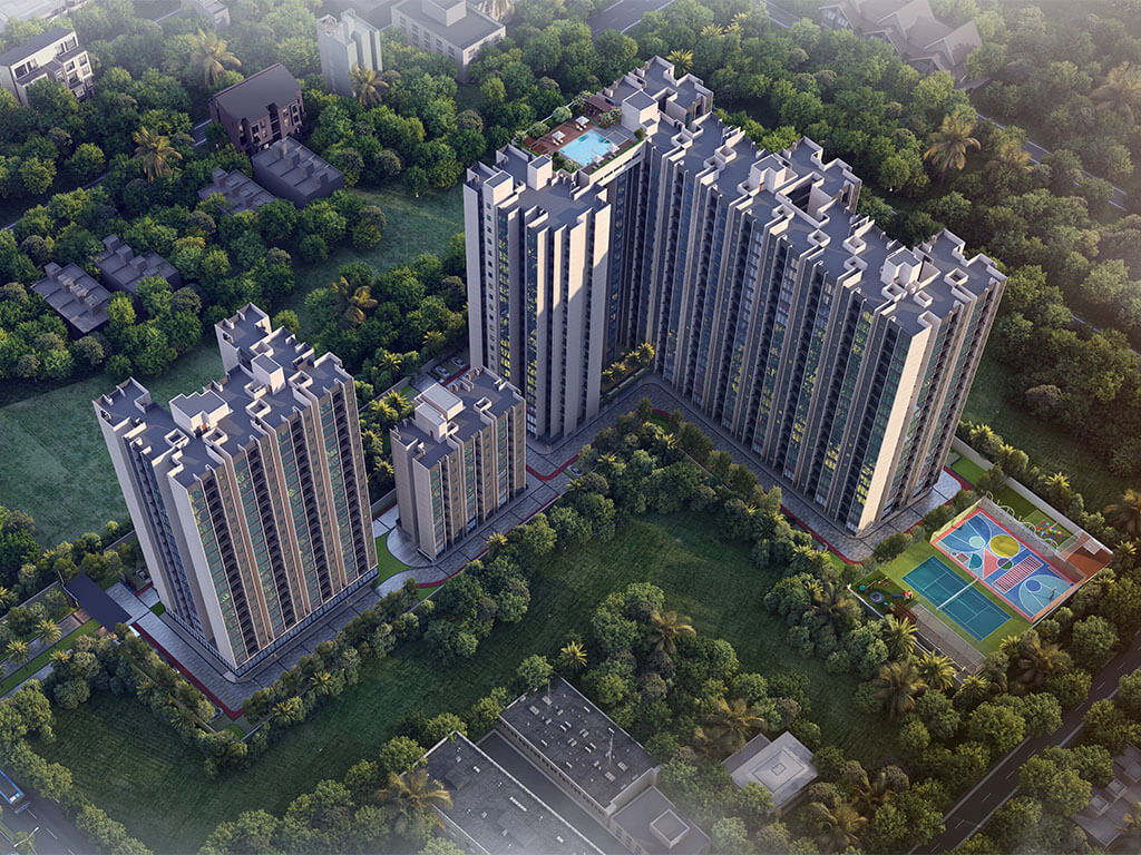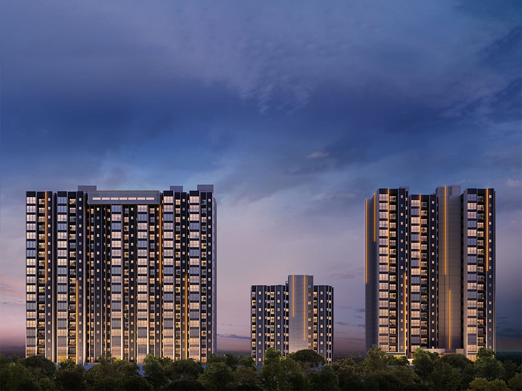 2. The Premium Apartment towers stands tall with the elevation being Highlighted by a Dynamic Facade lighting.