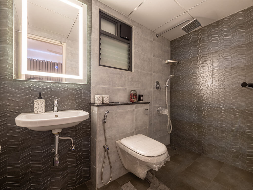 28. Pest-free SS gratings are provided in the Master Toilet and other toilets/kitchens respectively.