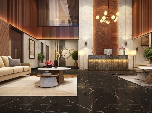 4. Metal sculptures in Water cascade and feature wall – a dignified clubhouse entry.