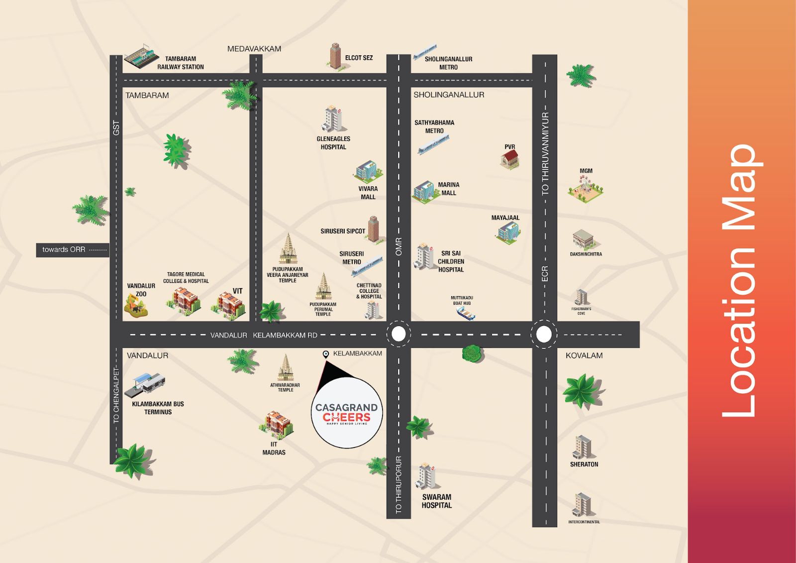 Casagrand Cheers is a premium retirement community that offers an active and superior lifestyle for senior citizens. The community is developed with features that ensure comfort, convenience, safety, and security of the residents. With around 40+ amenities of outdoor and indoor recreational facilities, the community offers an enviable livelihood.