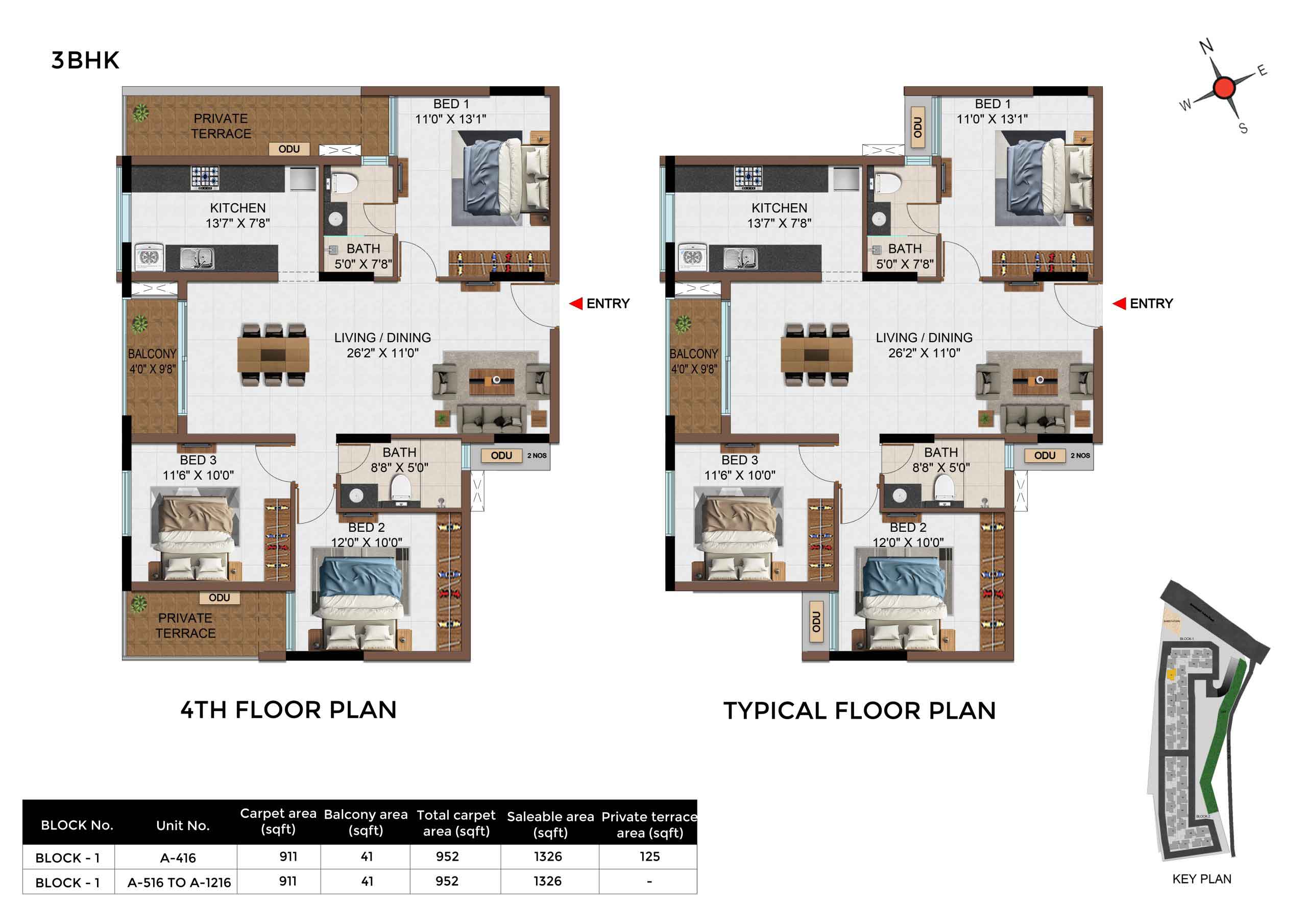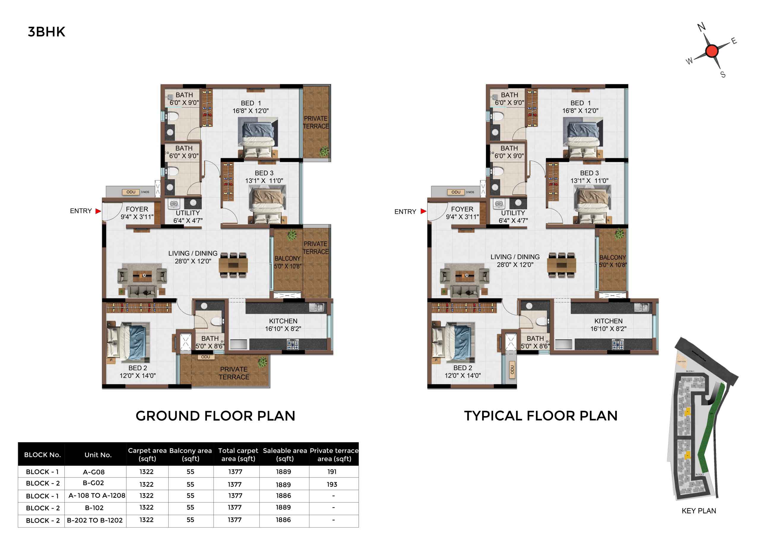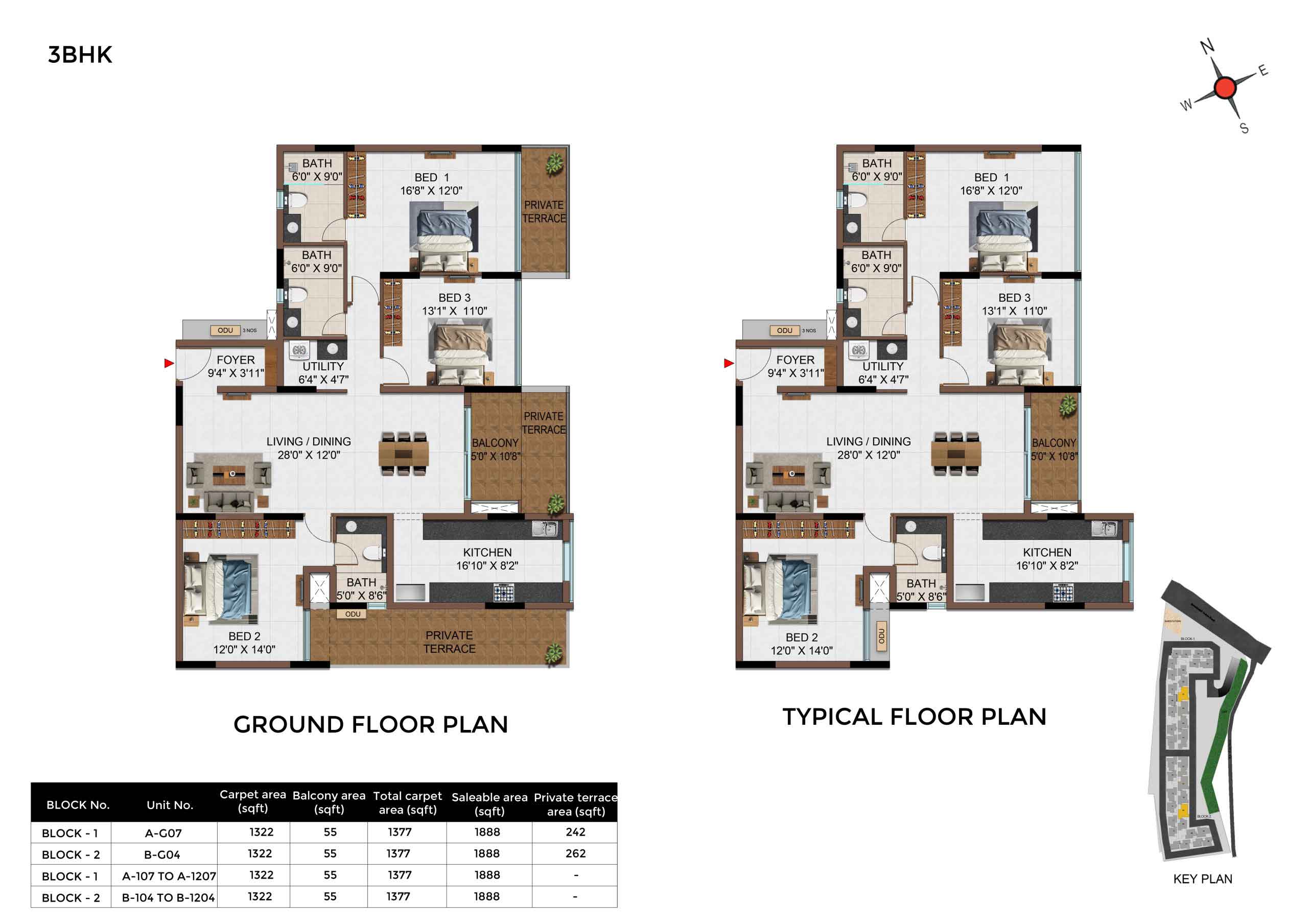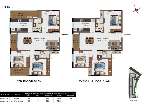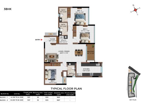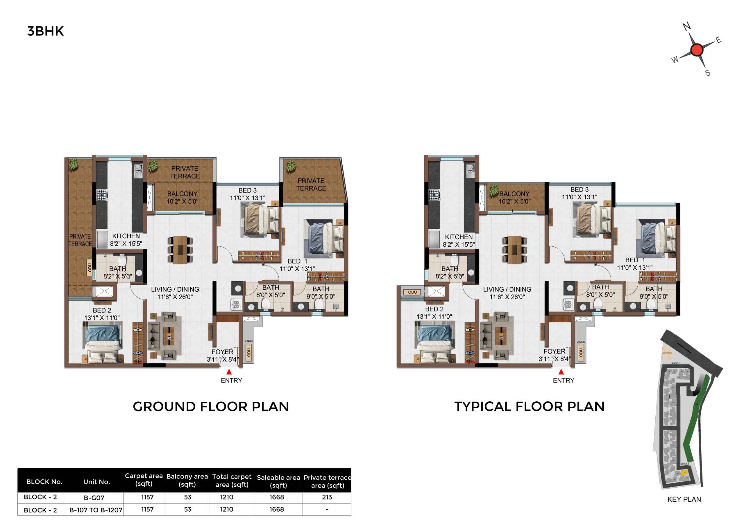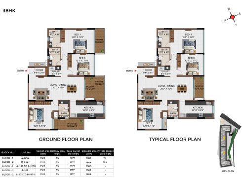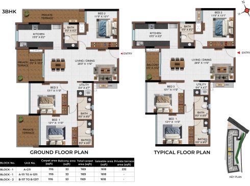 | 3 BHK | Apartment | 1342Sqft - 1889 Sqft | Rs 4549 / Sqft | Rs 68L to 91L |