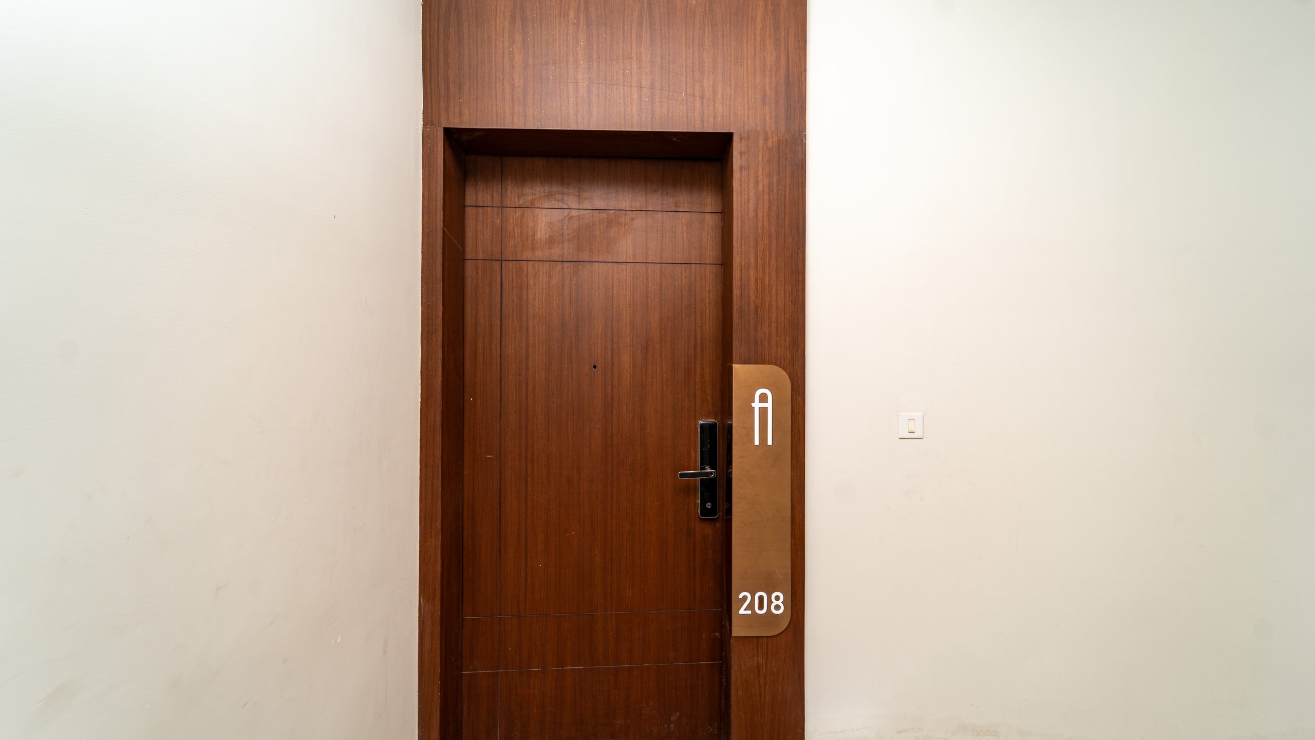 Main Door : Veneer finish full jamb architrave with double side veneer finish door of size 1050x2300mm