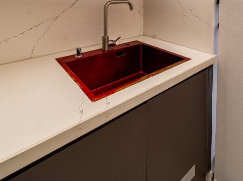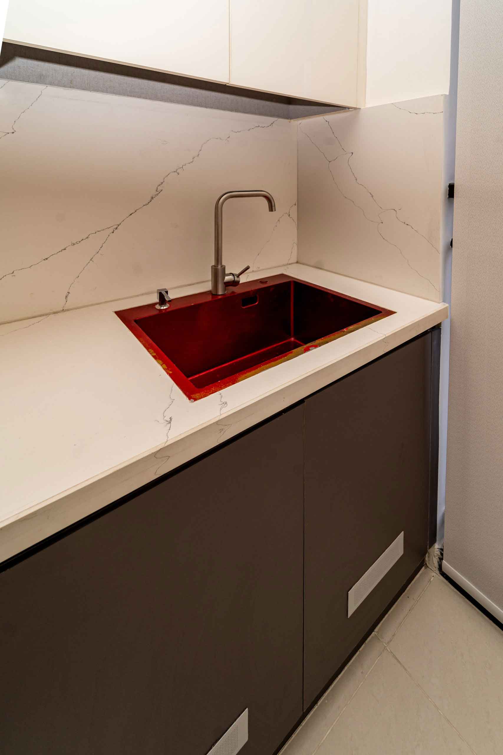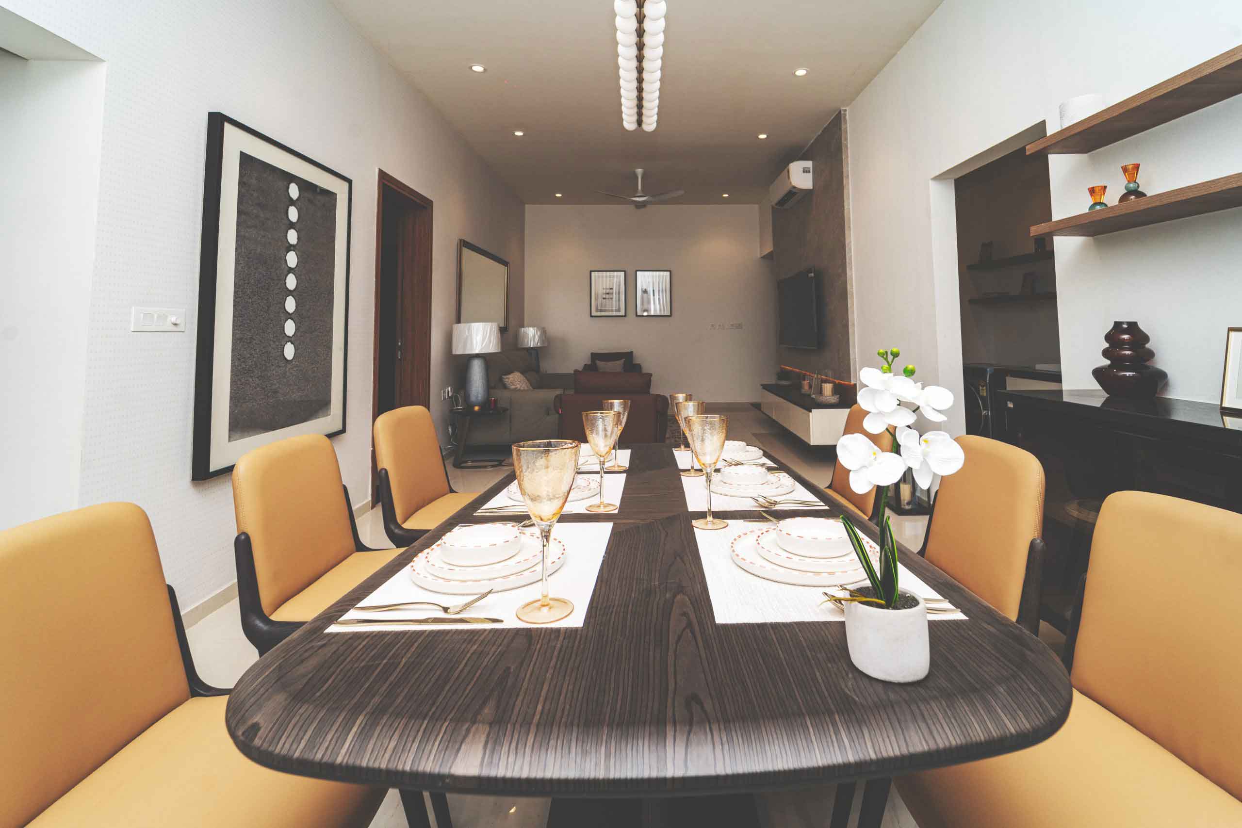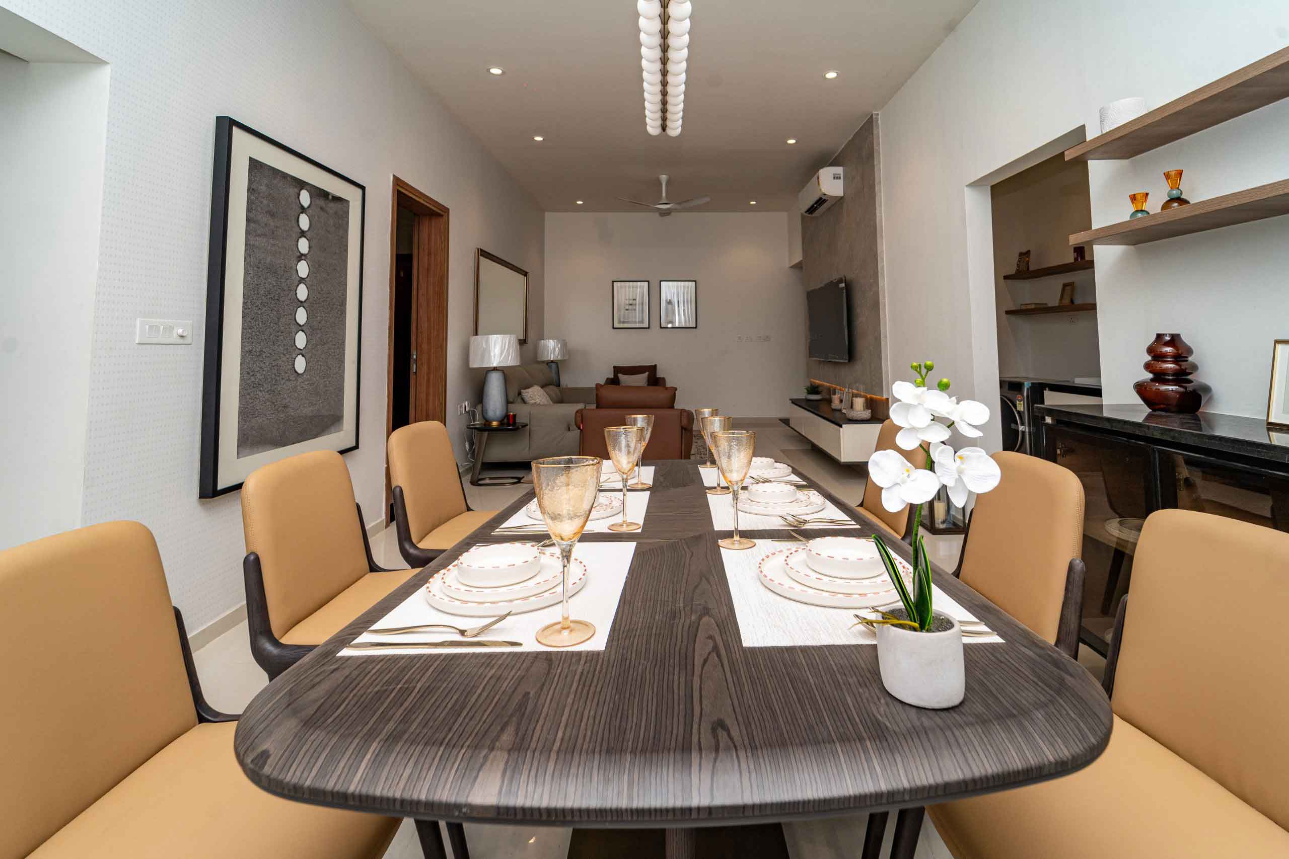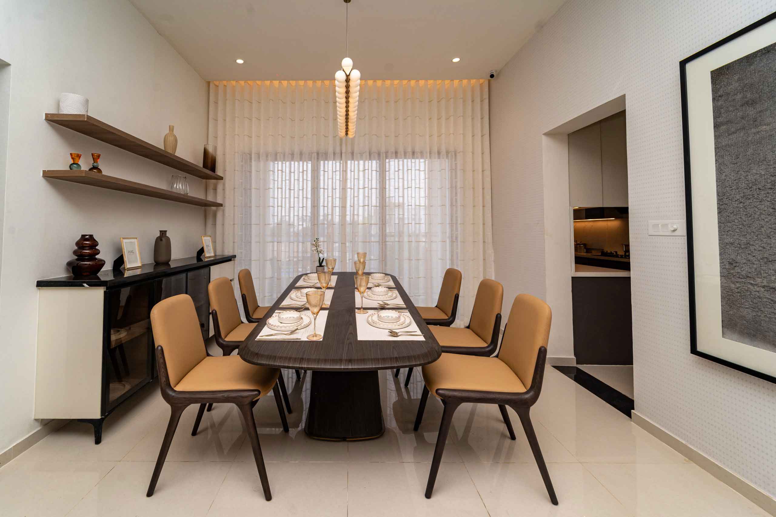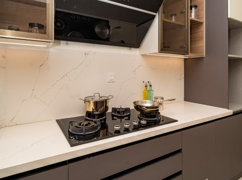 Dining : Granite countertop wash basin and granite wall dado of height 200mm (Wherever applicable)