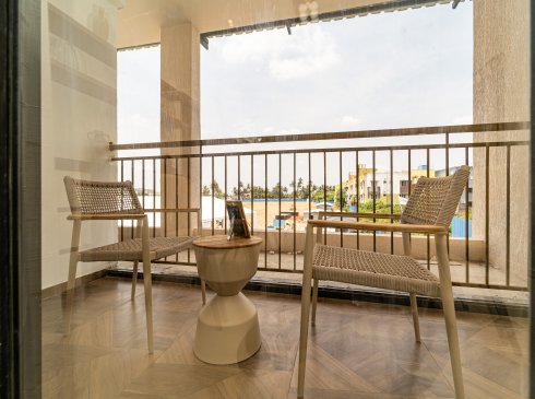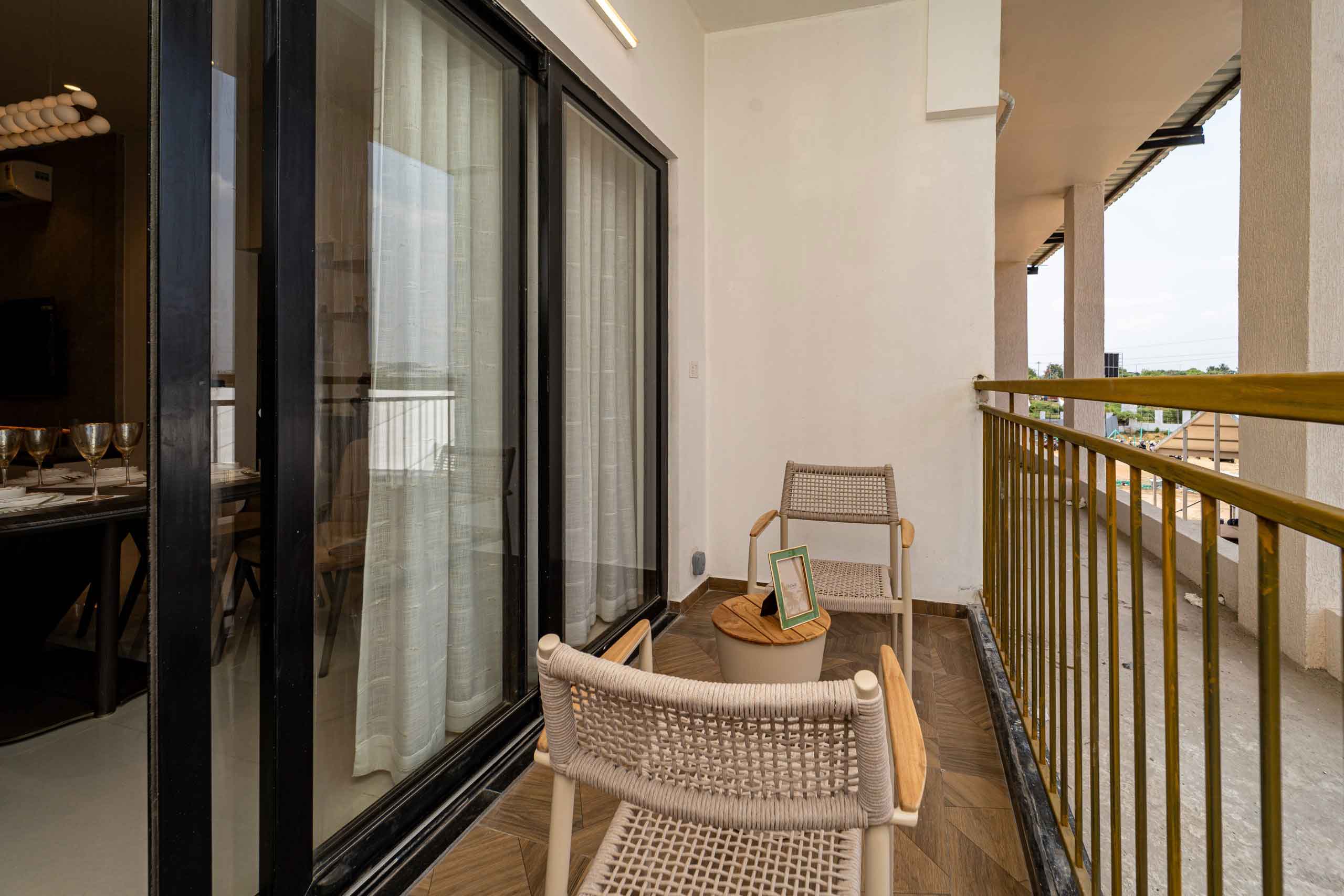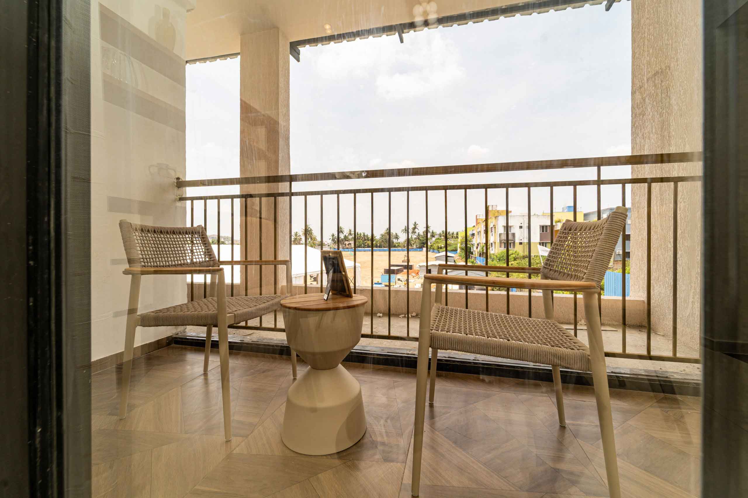 Balcony & Private Open Terrace: Wooden finish tile flooring of size 600x1200mm