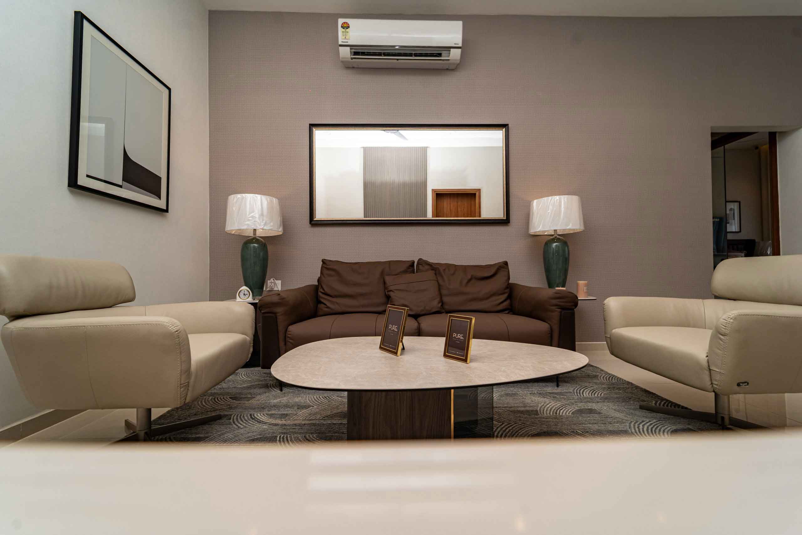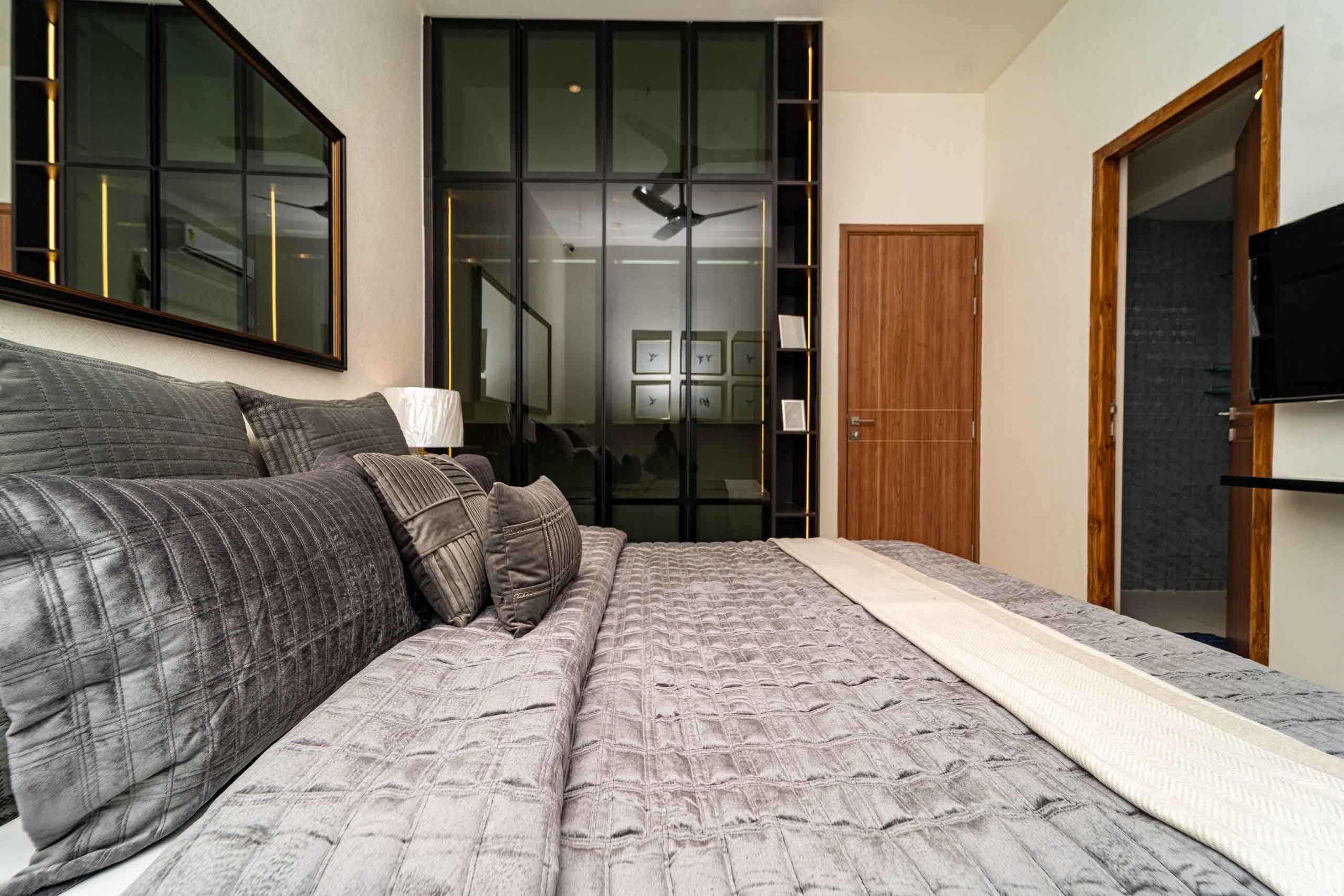 French Doors : Powder coated aluminum frame and doors with toughened glass with safety unlock for french door (Wherever applicable)