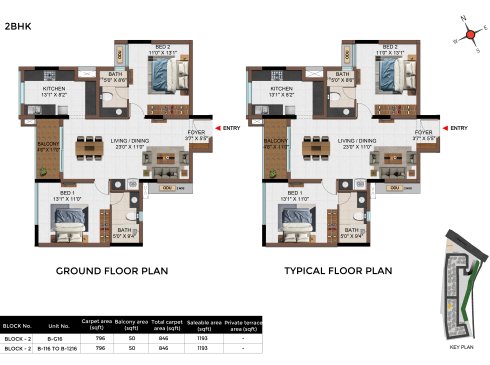 | BHK | Unit Type | Built-Up Area | Price Per Sq. Ft. | Price Range |