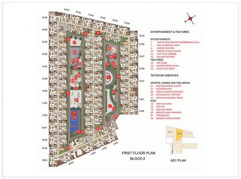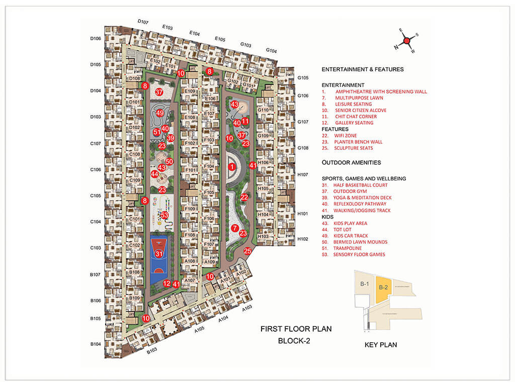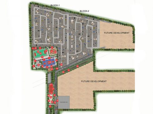 14. Futsal court, Bocce ball, Box Cricket, Beach volleyball court, multipurpose court, Half-Basketball court, etc encourage the residents for active