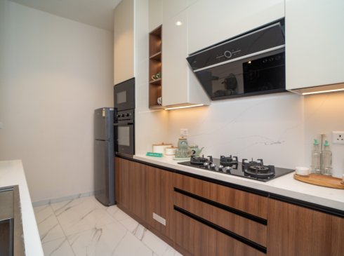 35. Kitchens are wider and provided with double side counters in all the