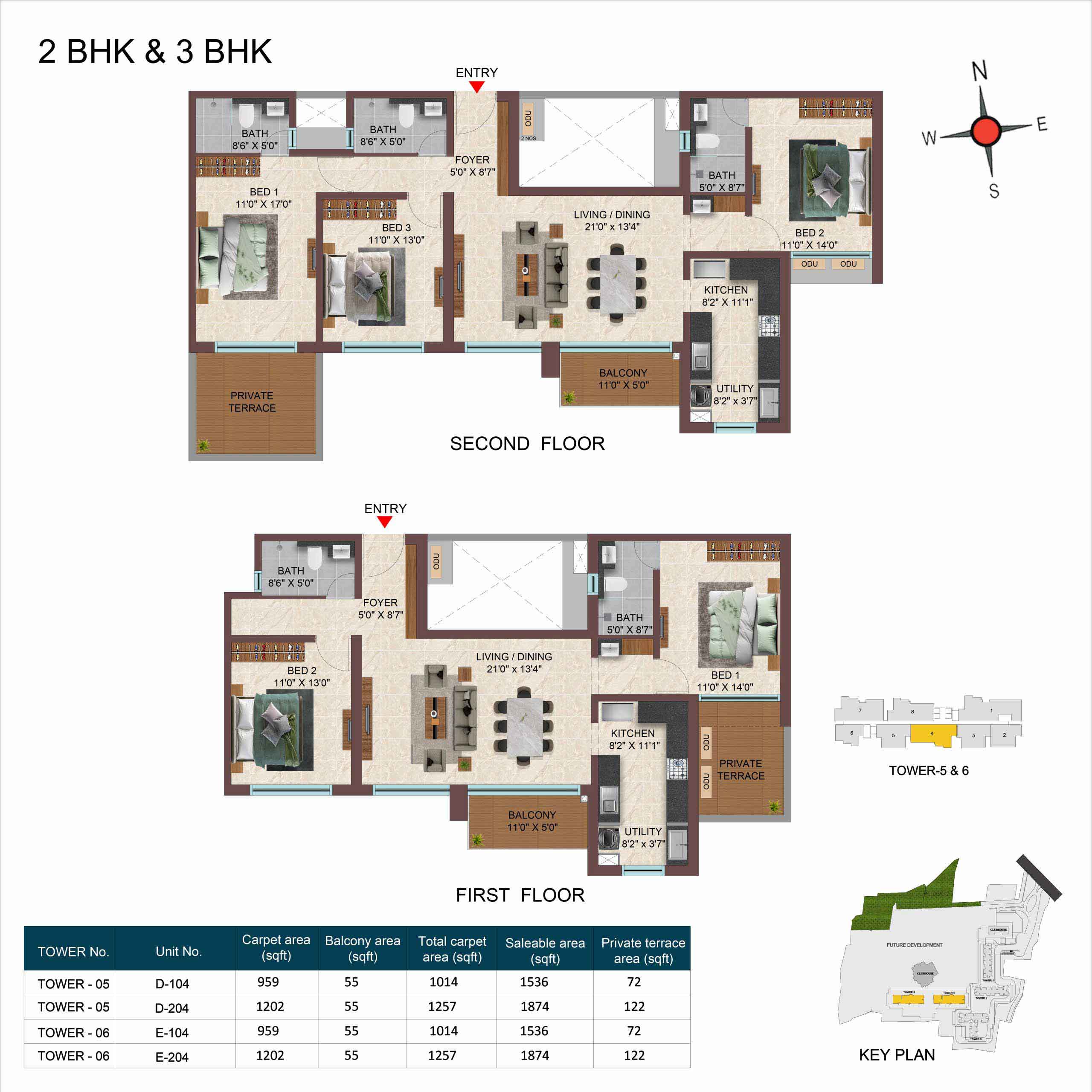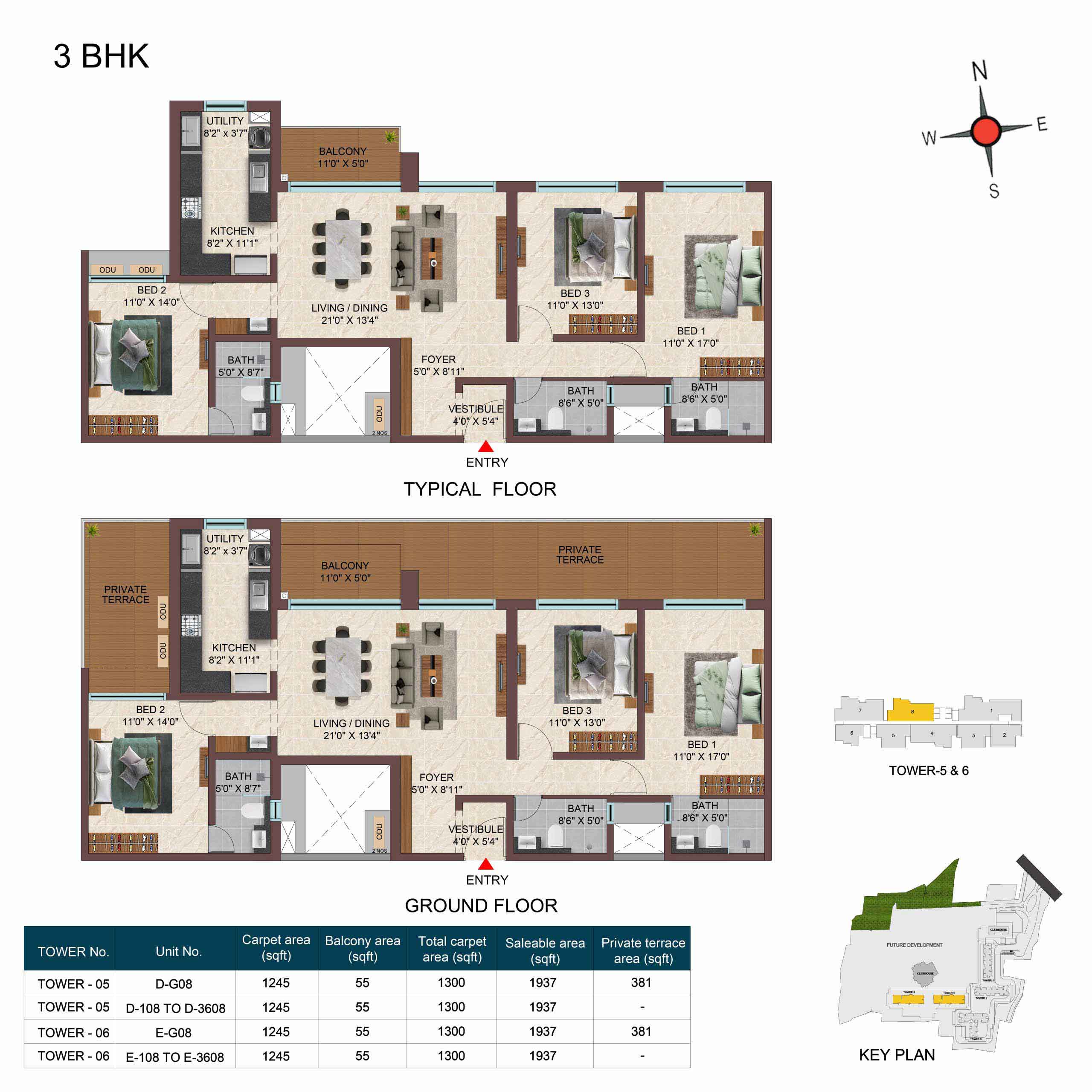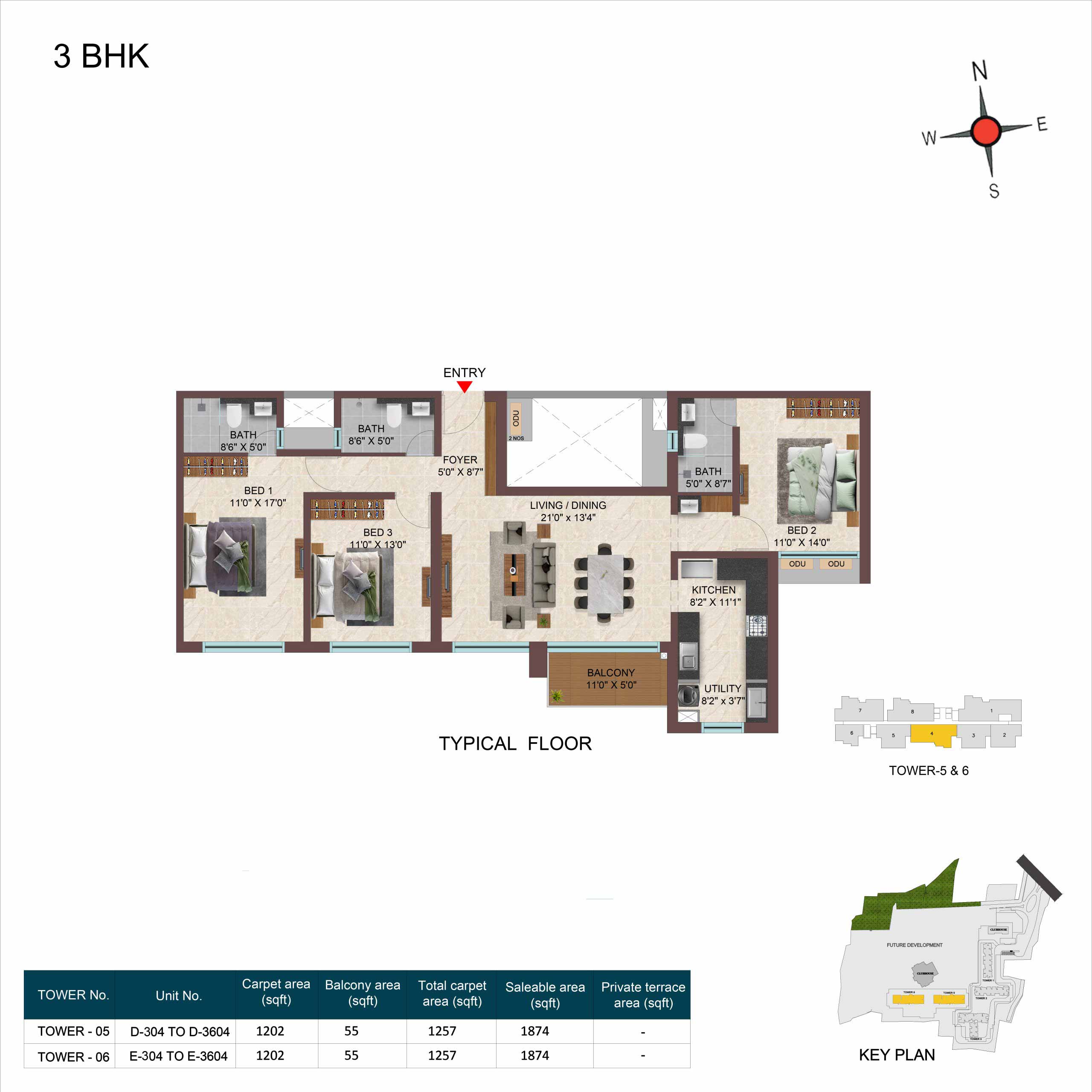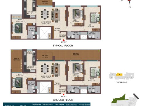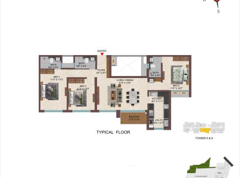 | 3BHK -3T | Apartment | 1711 Sqft - 1942 Sqft | ₹ 5149 / Sqft | ₹ 95L to 1.06Cr |