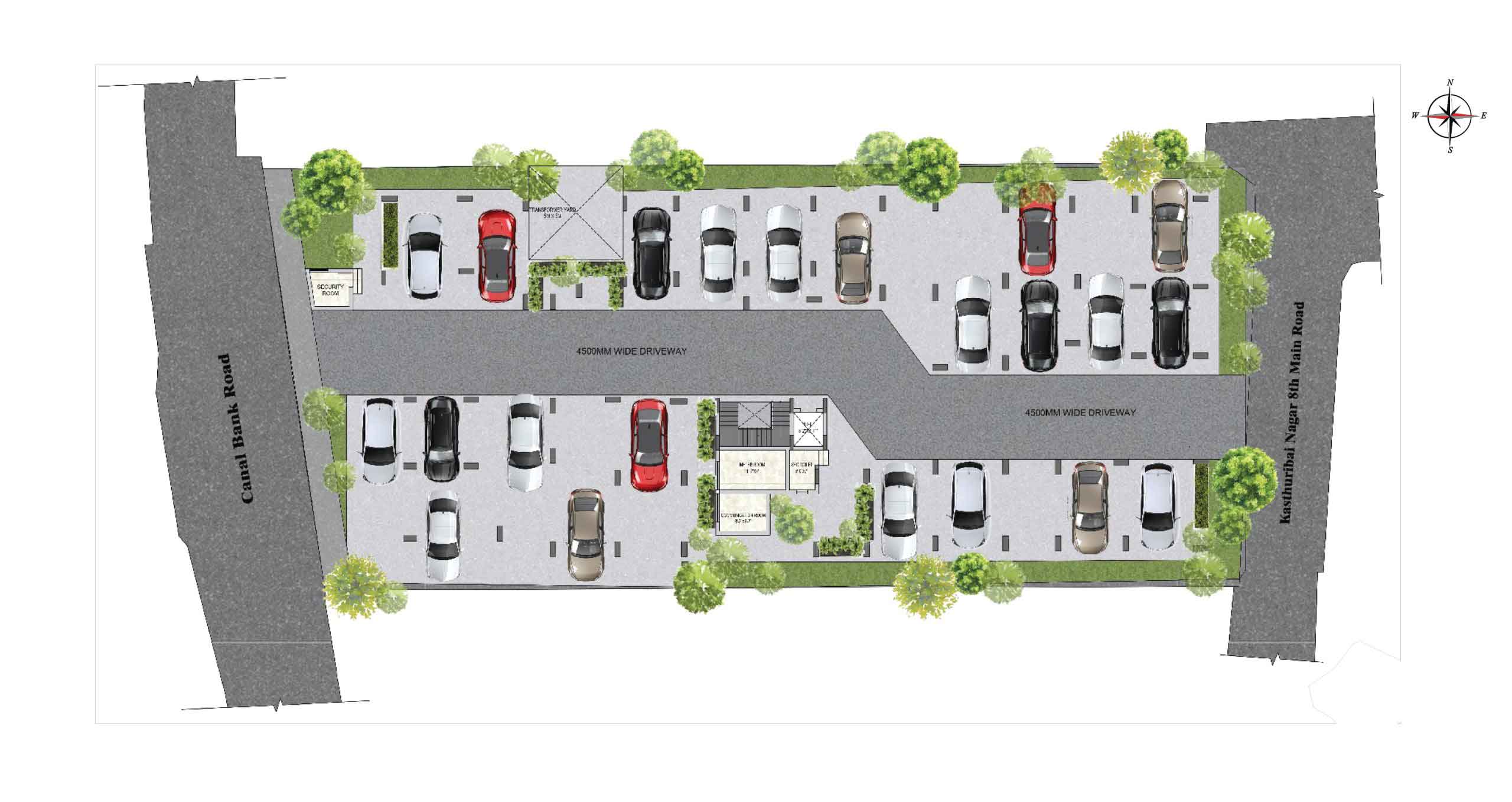 External Driveway : Interlocking paver block / equivalent flooring with demarcated driveway as per landscape design intent