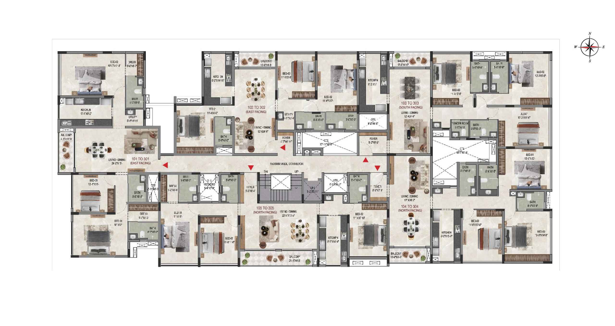 Corridor Floor : Granite flooring with leather finish at all floors