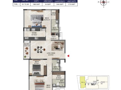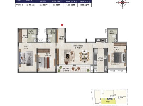 | BHK | Unit Type | Built-Up Area | Price Per Sq. Ft. | Price Range |