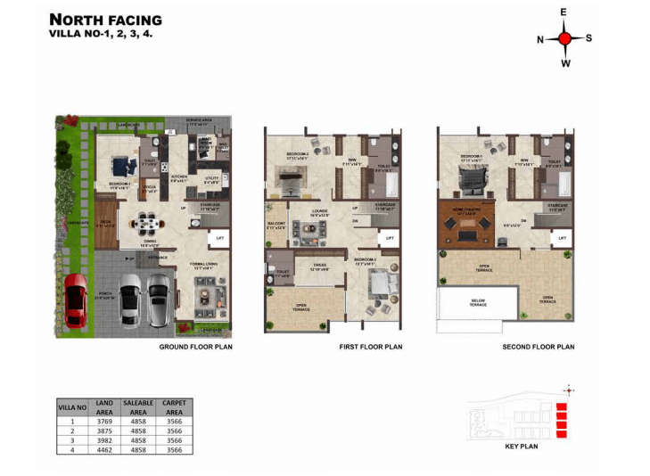- Dedicated 3 car parks along with landscape is designed for all the villas.