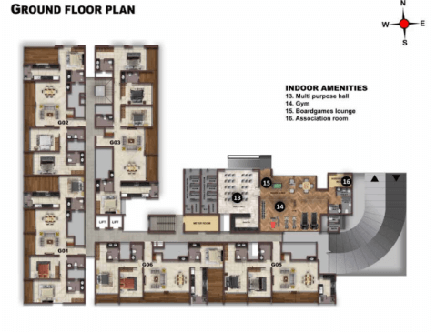 - Rooftop stepped seating deck and Board games plaza for the residents to enjoy their evenings with communal activities.