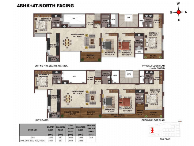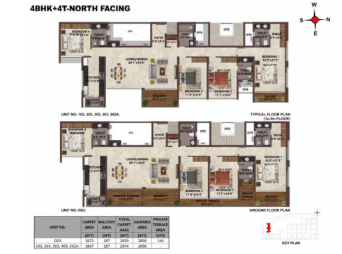 - 3 & 4 BHK signature units with Walk-in wardrobes are provided in one of the bedrooms.