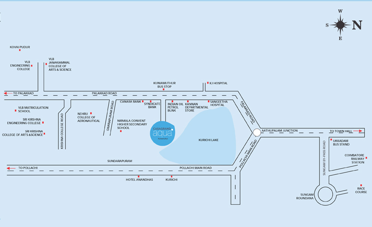 A scenic view of the Kurichi Lake and a soothing atmosphere to relax, Casagrand Aqua offers you just that and much more! Located in Kuniamuthur, a beautiful place in the city of Coimbatore, Casagrand Aqua consists of 78 Independent villas with an exclusive garden. Casagrand Aqua also has 16 regular 2 BHK apartments and 40 smart 2 BHK apartments. Apart from the contemporary new age architecture, you also get to enjoy the world-class lifestyle amenities offered here, which include a clubhouse with lounge, park with seating facilities, sandpit, mini theatre, and a fully equipped gym. Casagrand Aqua is the perfect location for you to enjoy your life to the fullest. Located just 400 meters Off Palakkad Main Road, Casagrand Aqua provides easy access to the most reputed schools, colleges, and hospitals. If luxury is what you need, Casagrand Aqua is the place to be in. This secure gated community is also Vaasthu compliant. So what are you waiting for? Head over to Kuniamuthur right away and check out the luxurious villas and apartments at Casagrand Aqua!