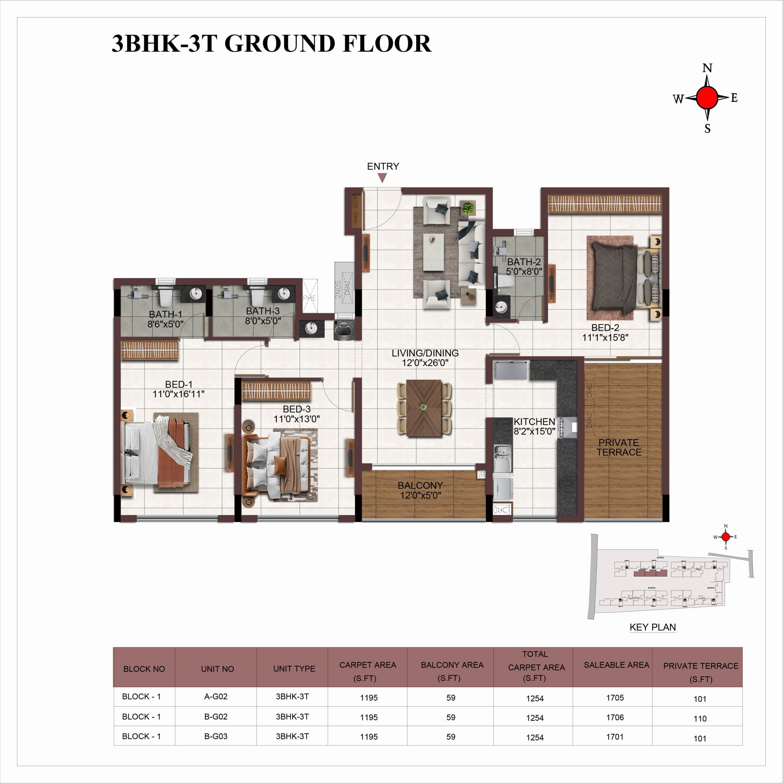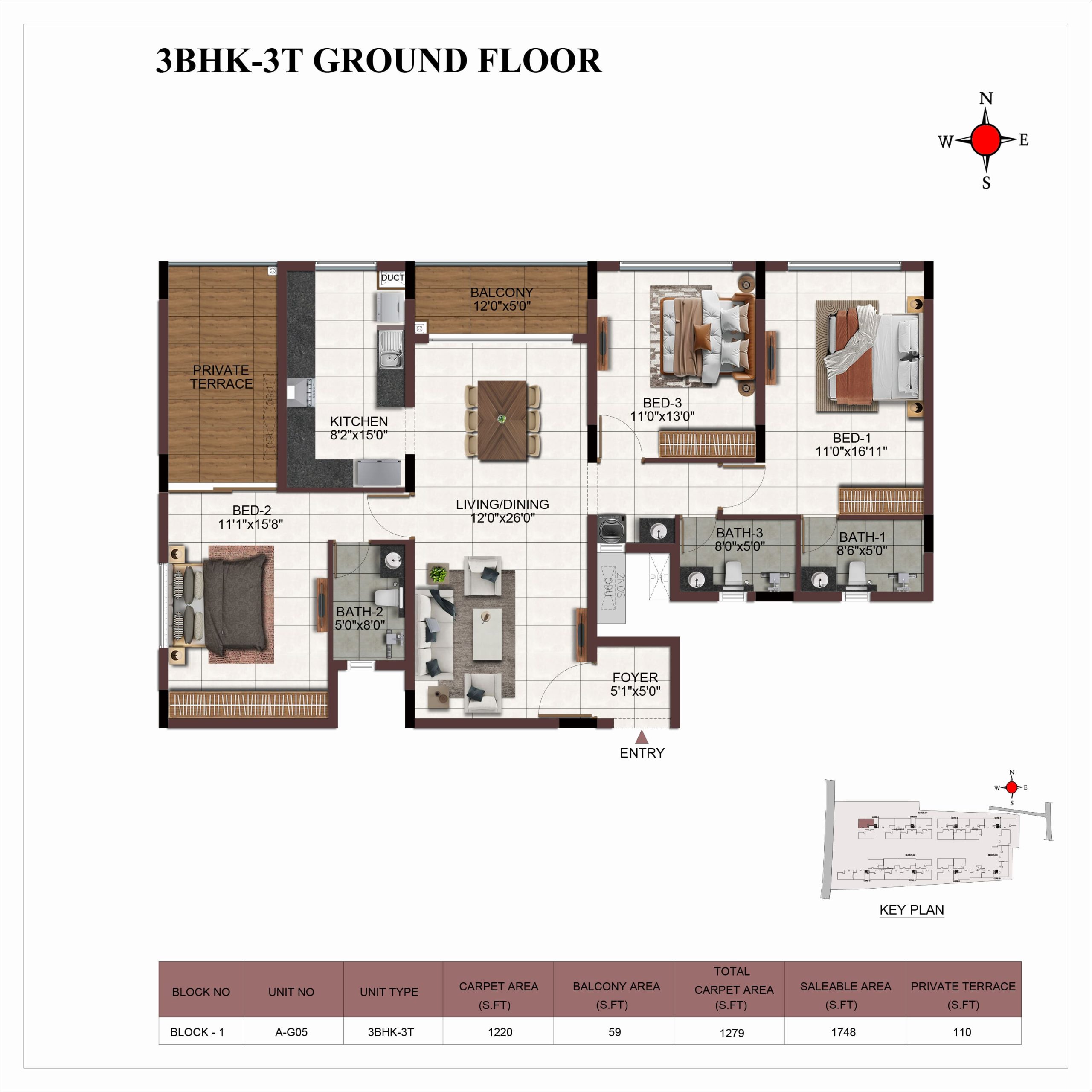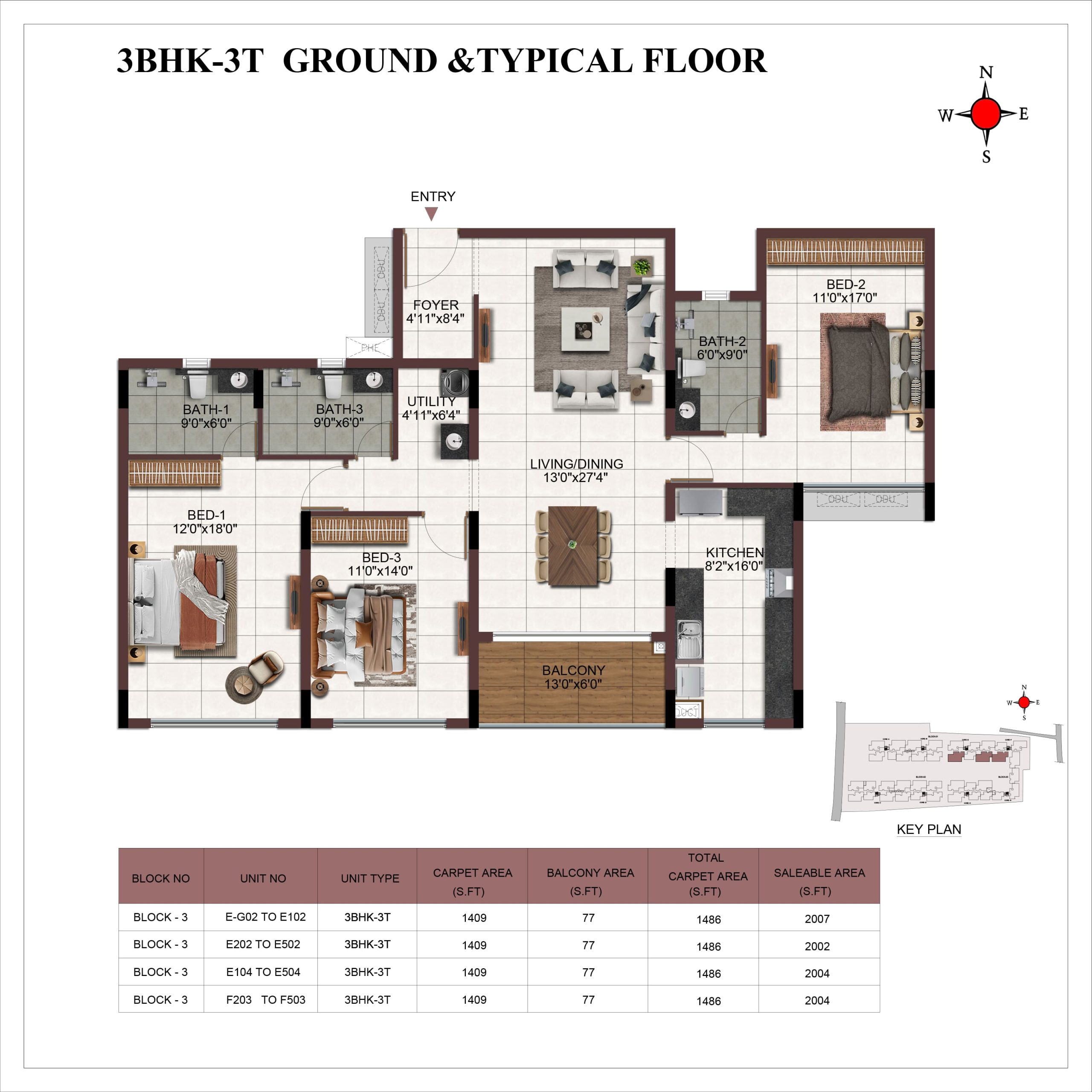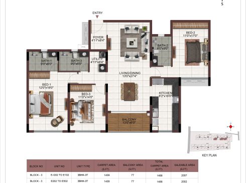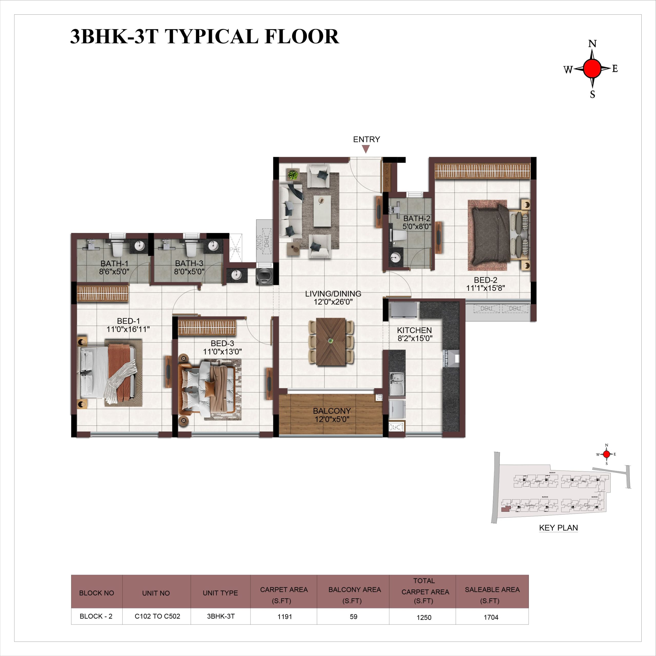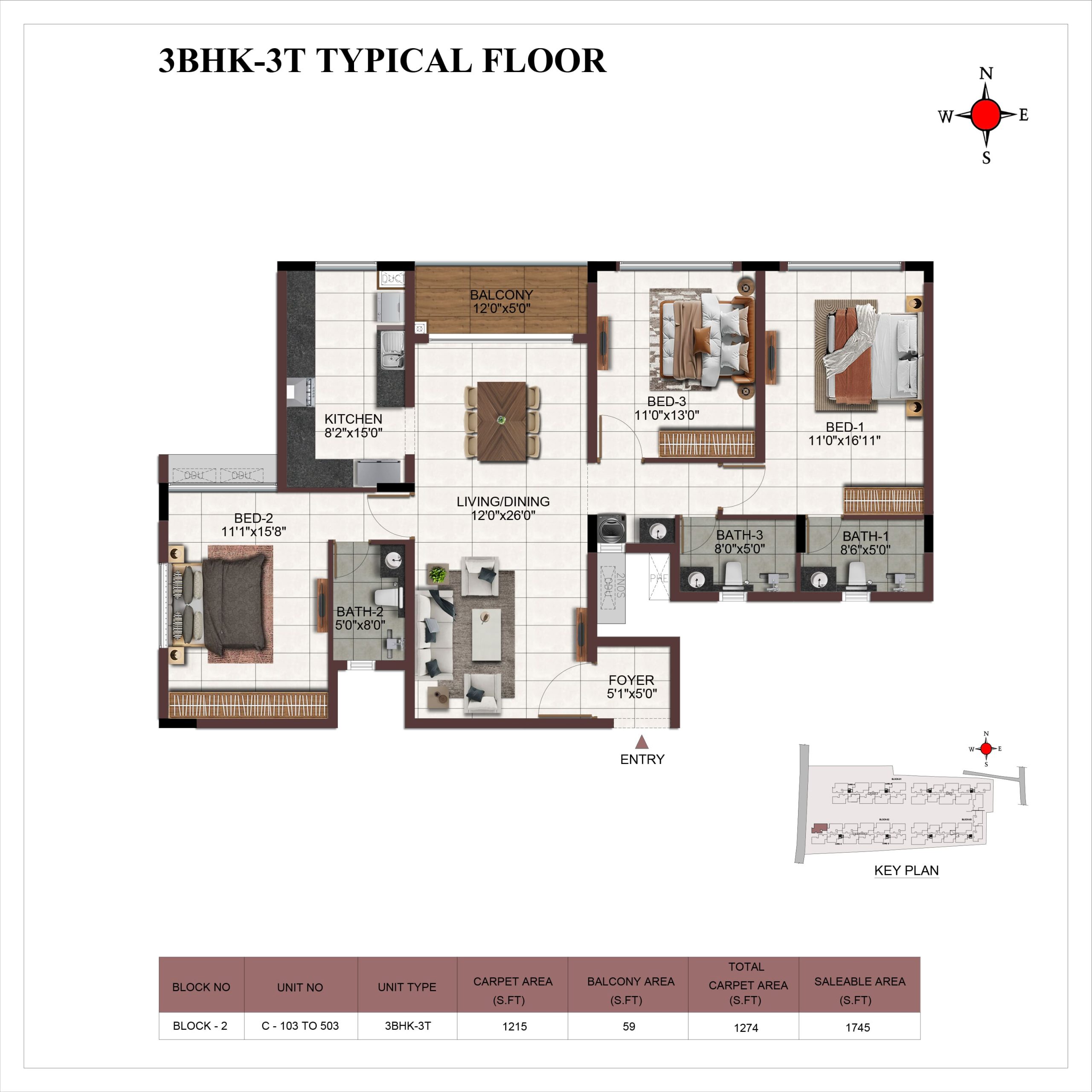| 3 BHK | Apartment | 1748 Sqft - 2010 Sqft | ₹ 5799/Sqft | ₹ 1.09Cr to 1.23Cr |