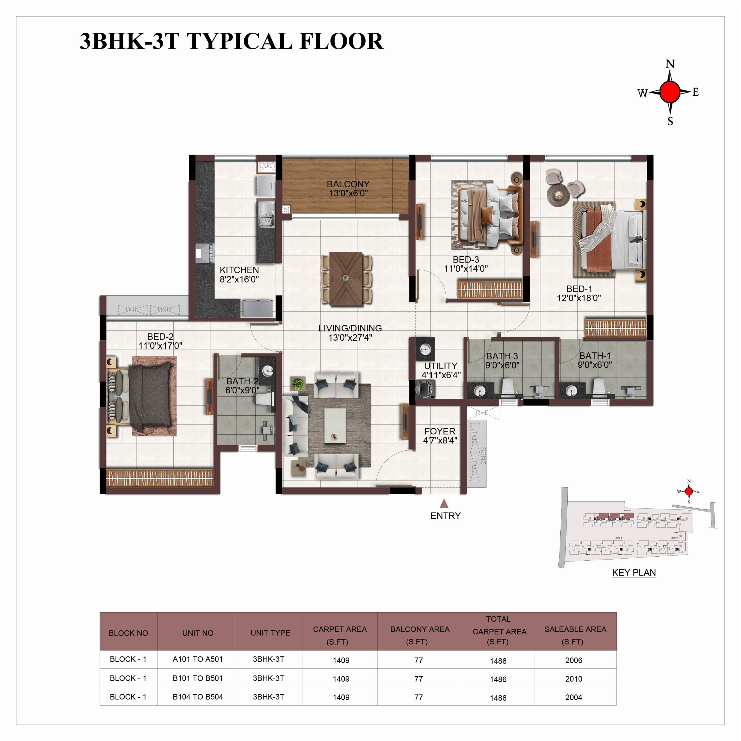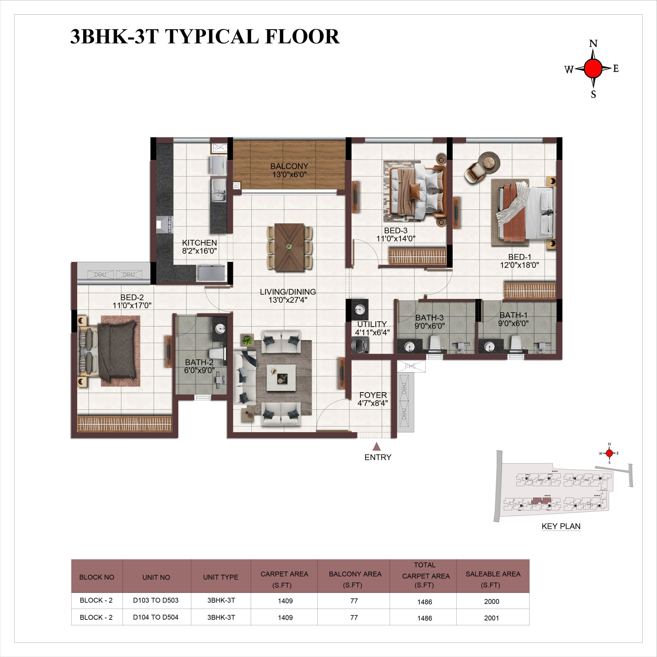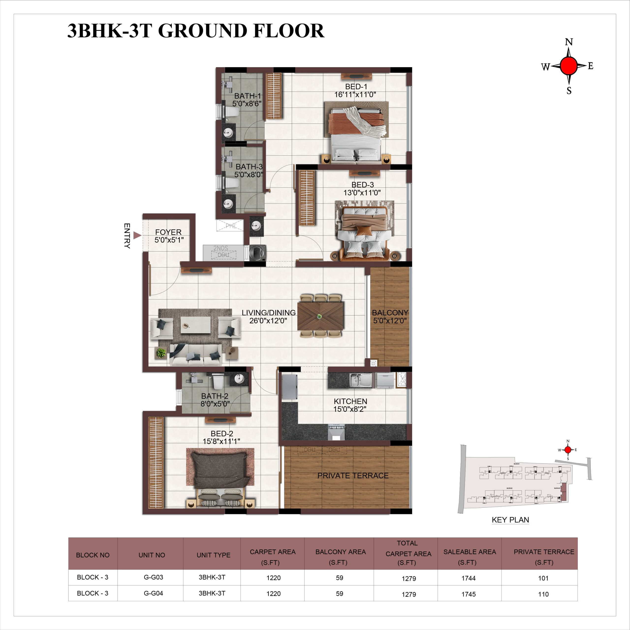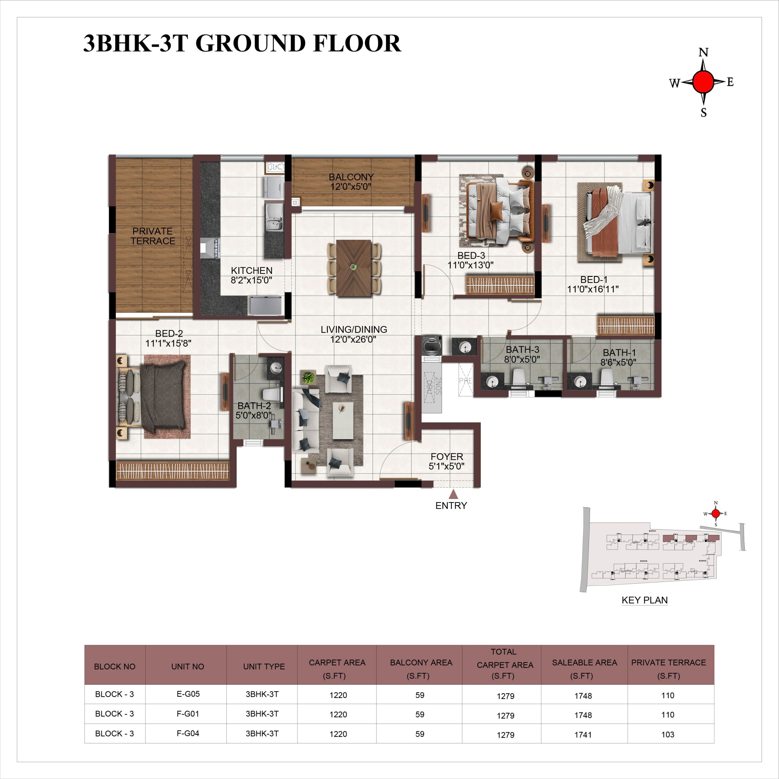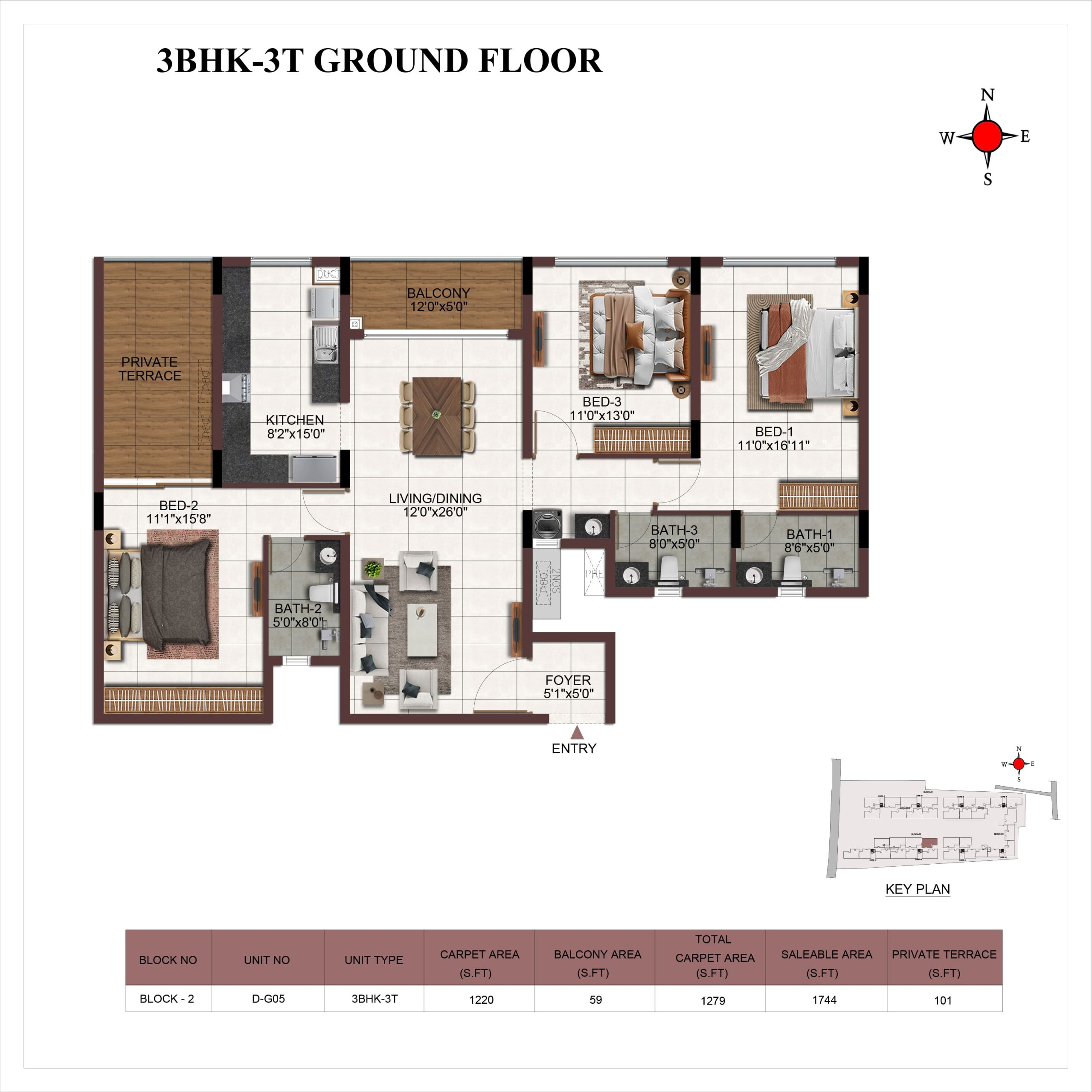 | 3 BHK | Apartment | 1748 Sqft - 2010 Sqft | ₹ 5799/Sqft | ₹ 1.09Cr to 1.23Cr |