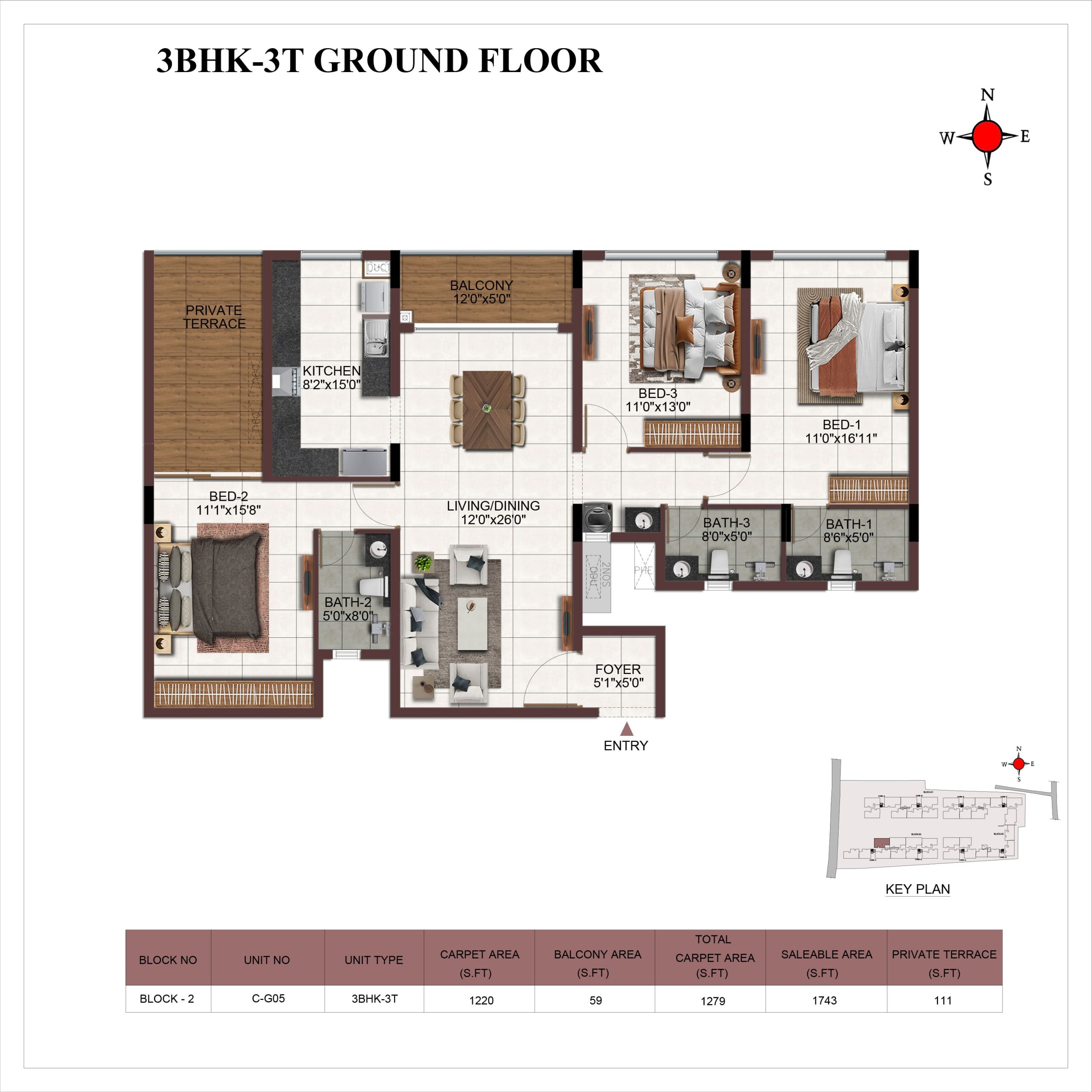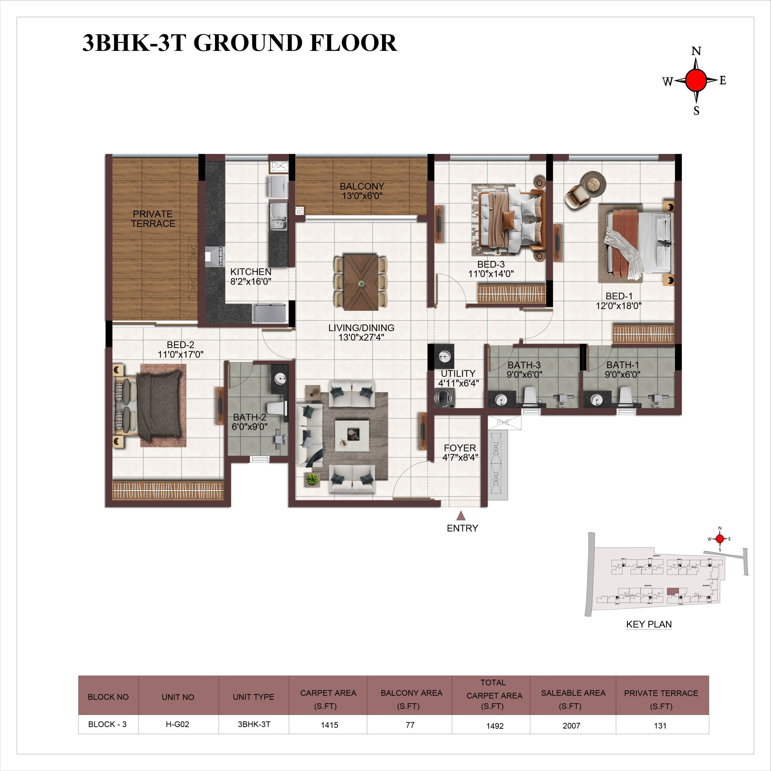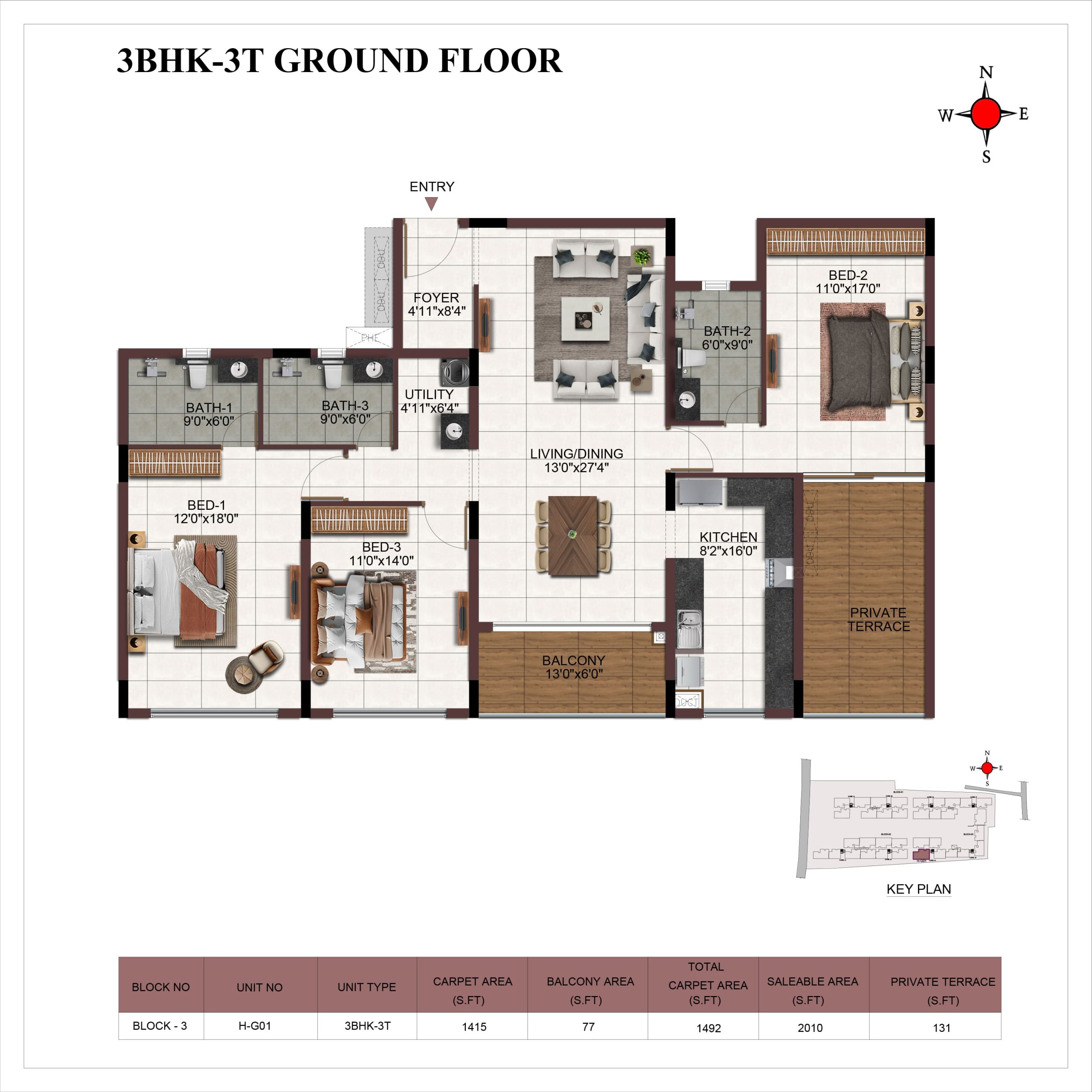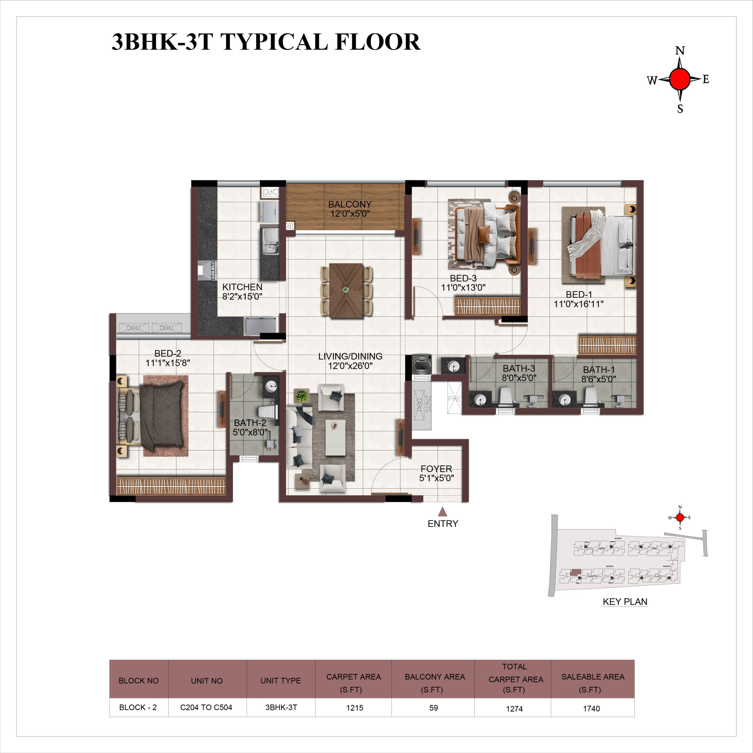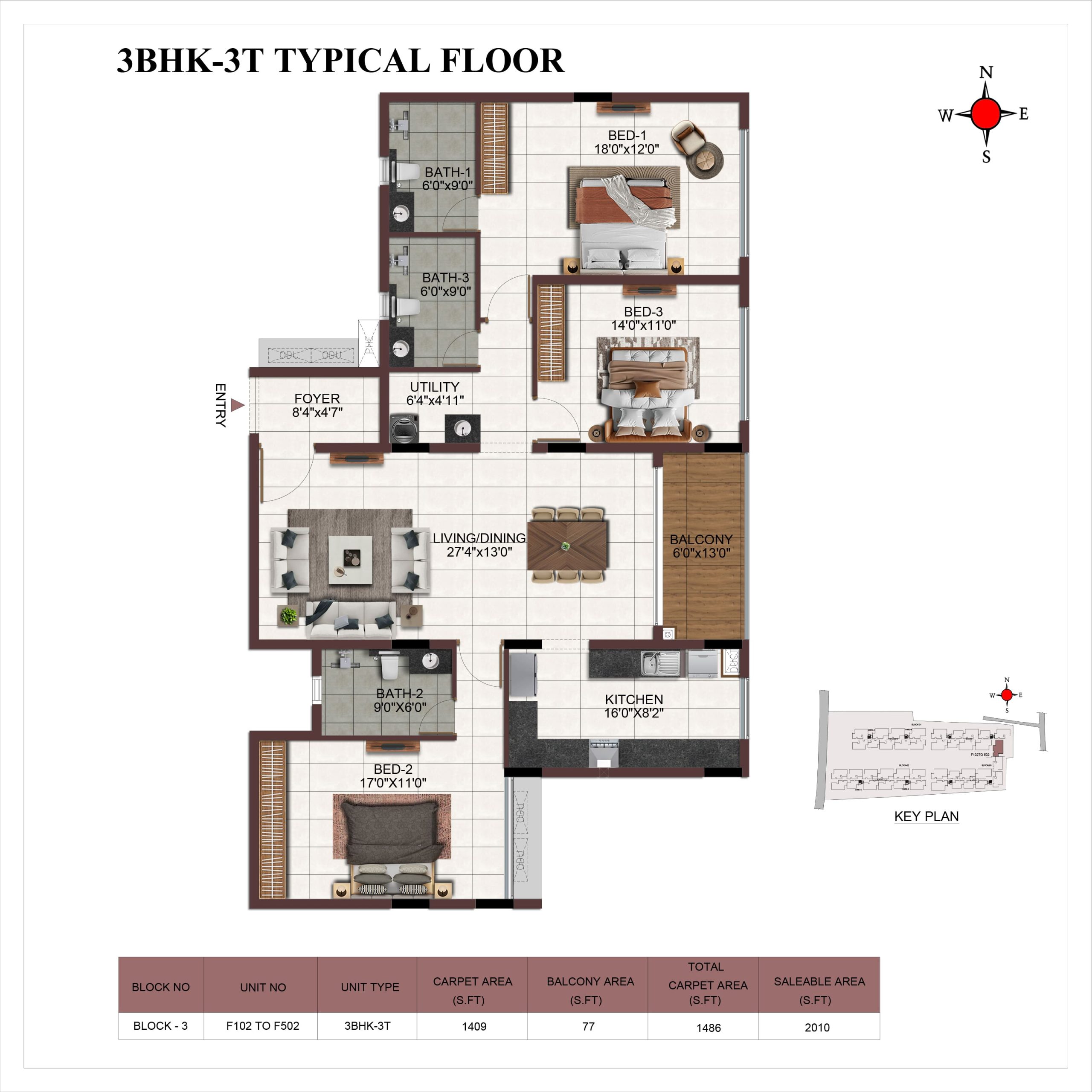 | 3 BHK | Apartment | 1748 Sqft - 2010 Sqft | ₹ 5799/Sqft | ₹ 1.09Cr to 1.23Cr |