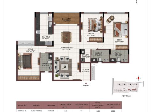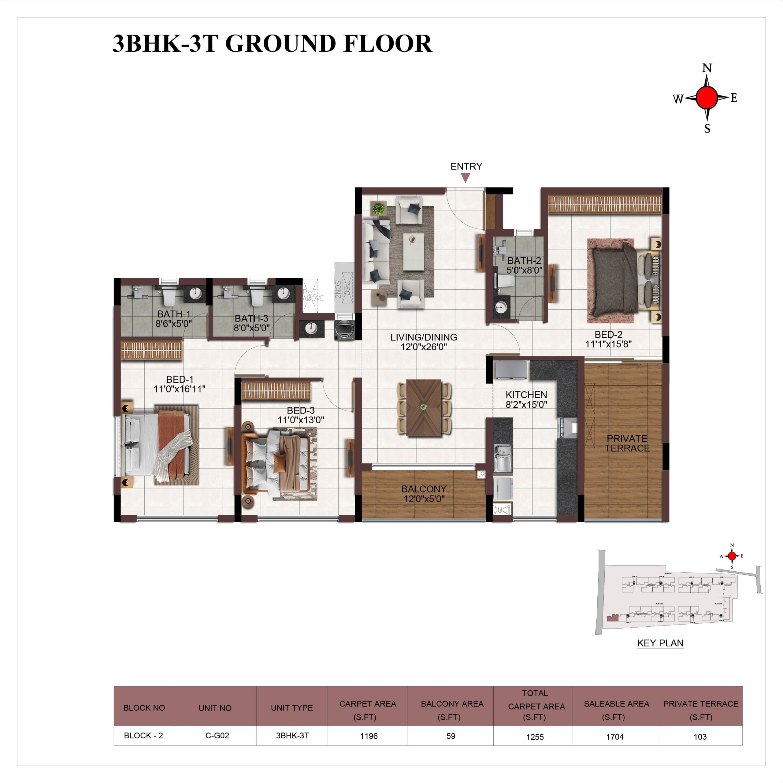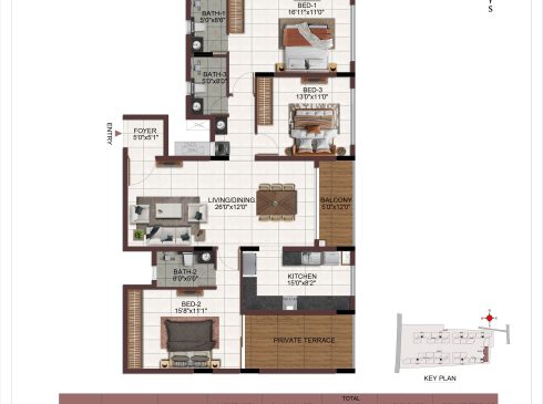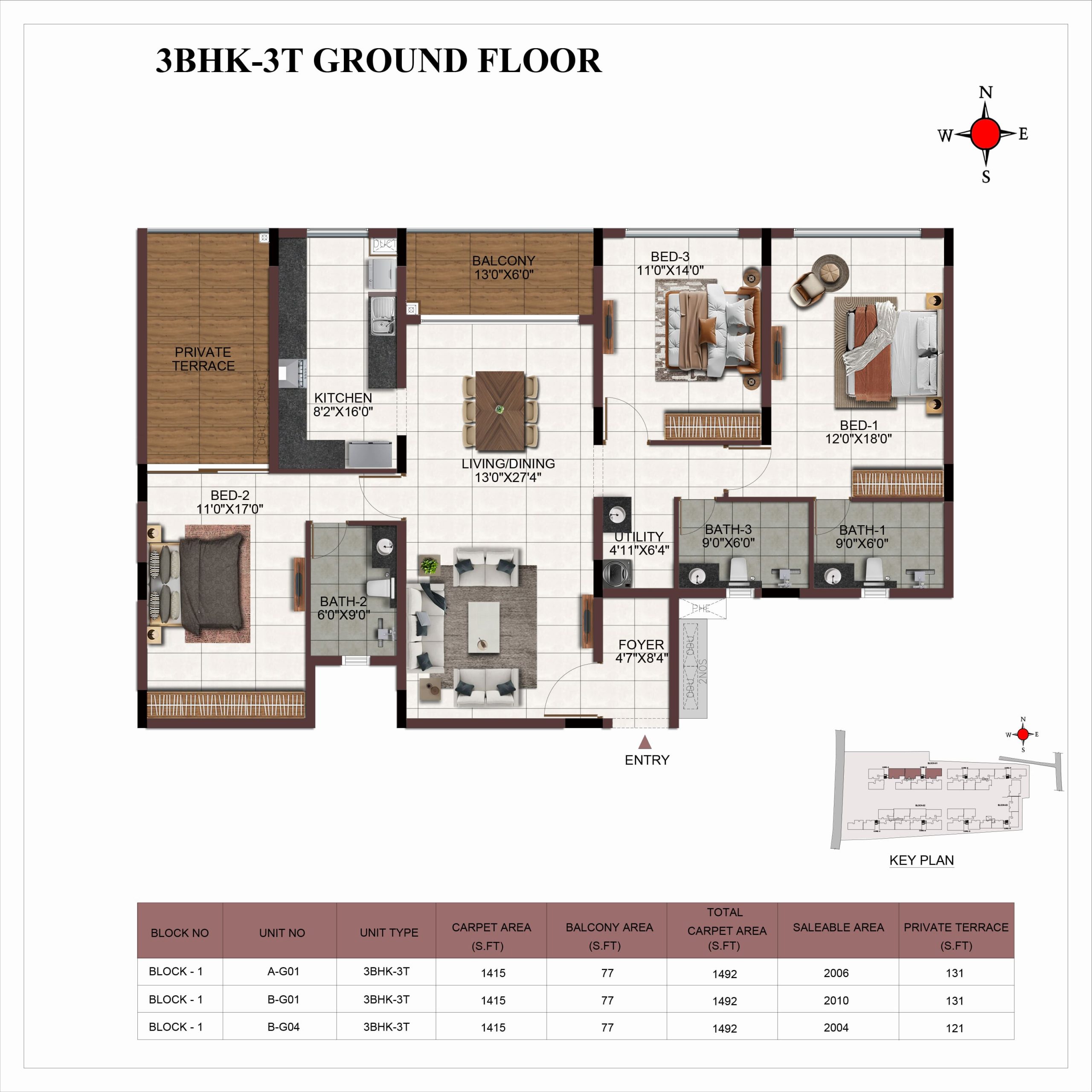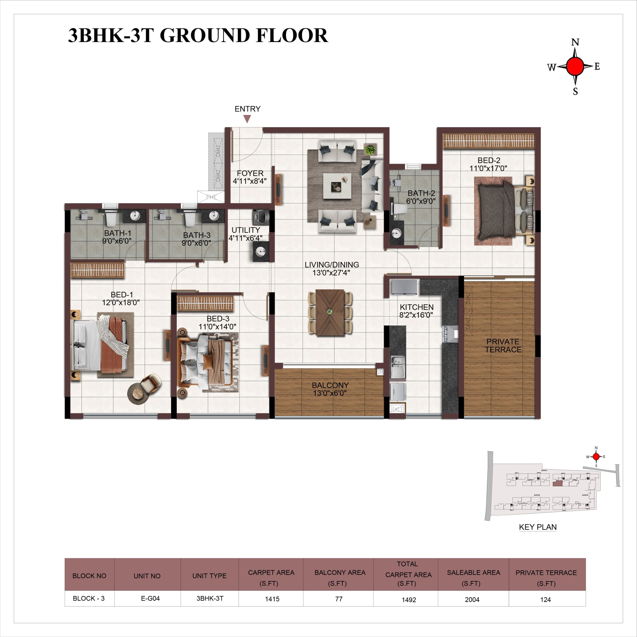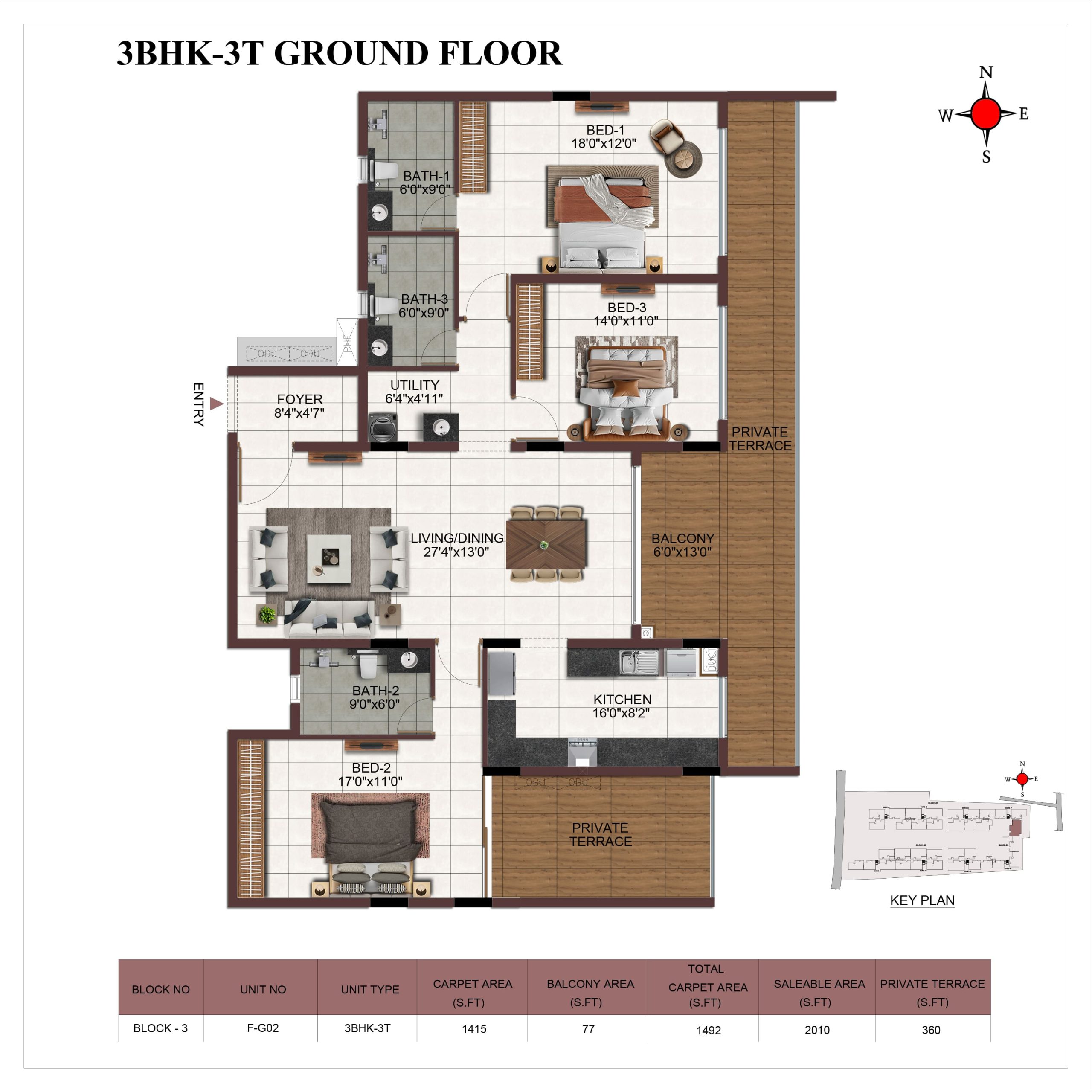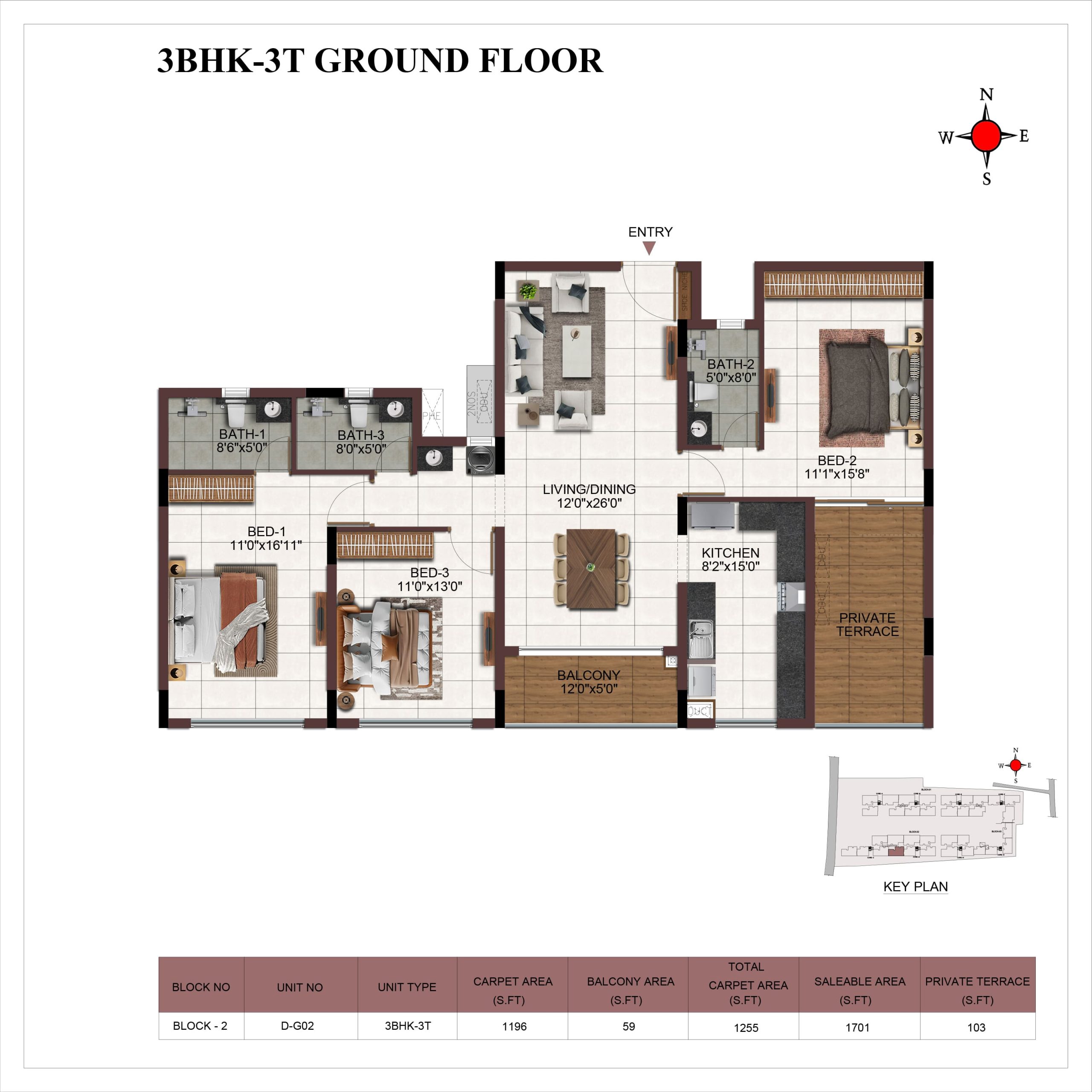 | 3 BHK | Apartment | 1748 Sqft - 2010 Sqft | ₹ 5799/Sqft | ₹ 1.09Cr to 1.23Cr |