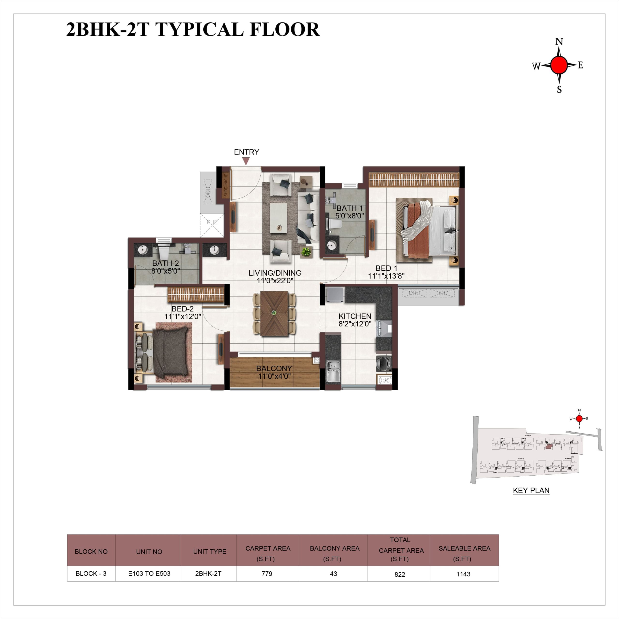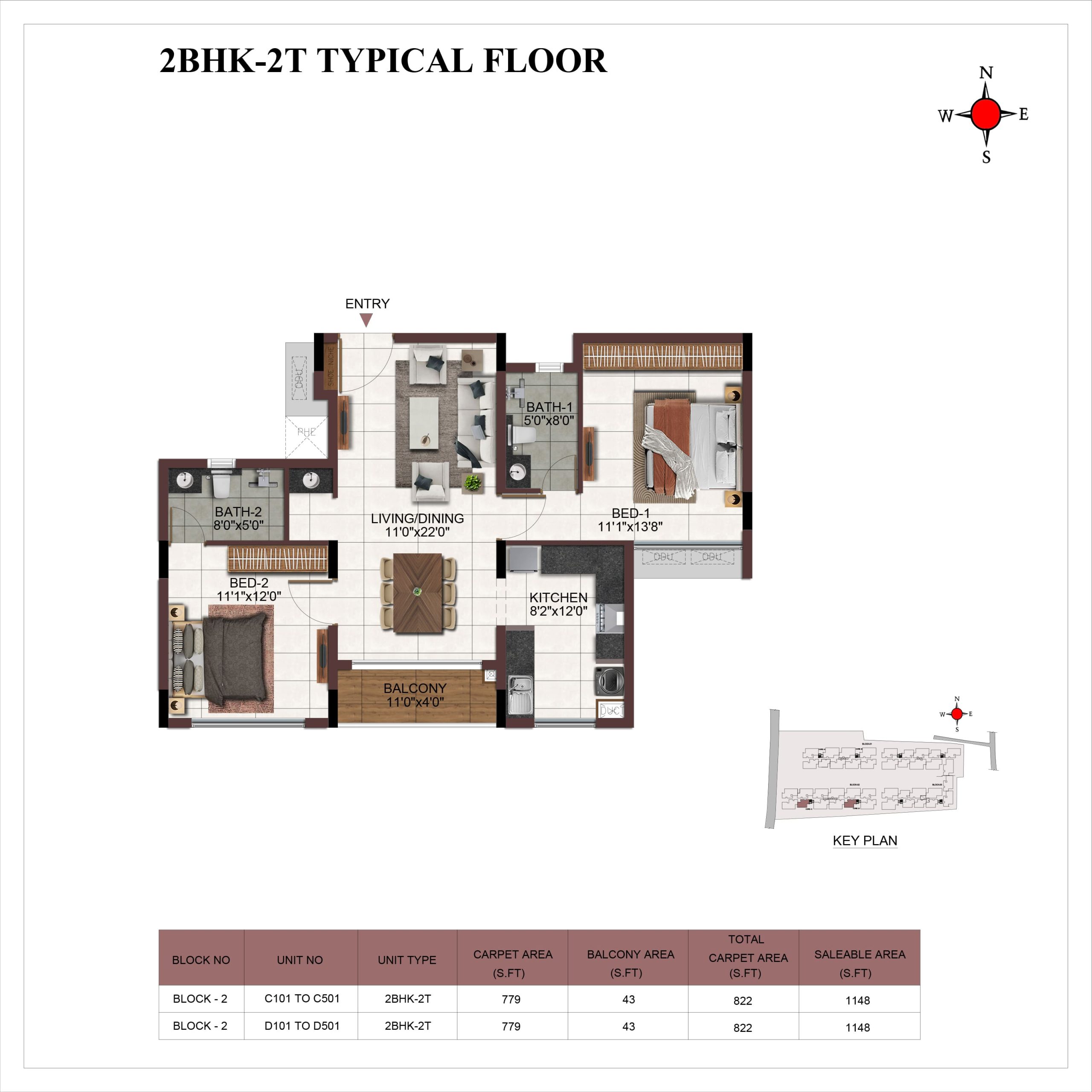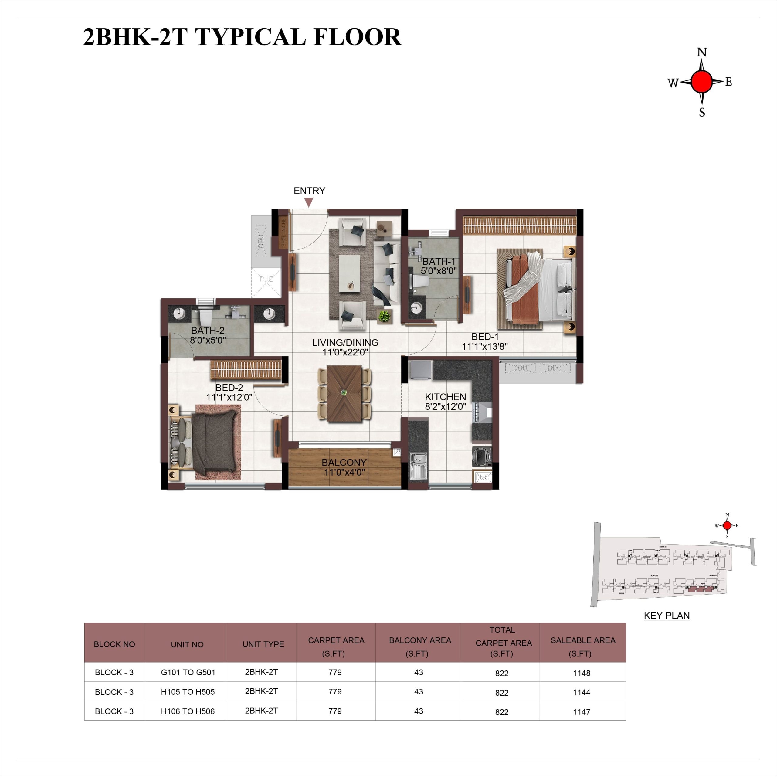 | BHK | Unit Type | Built-Up Area | Price Per Sq. Ft. | Price Range |